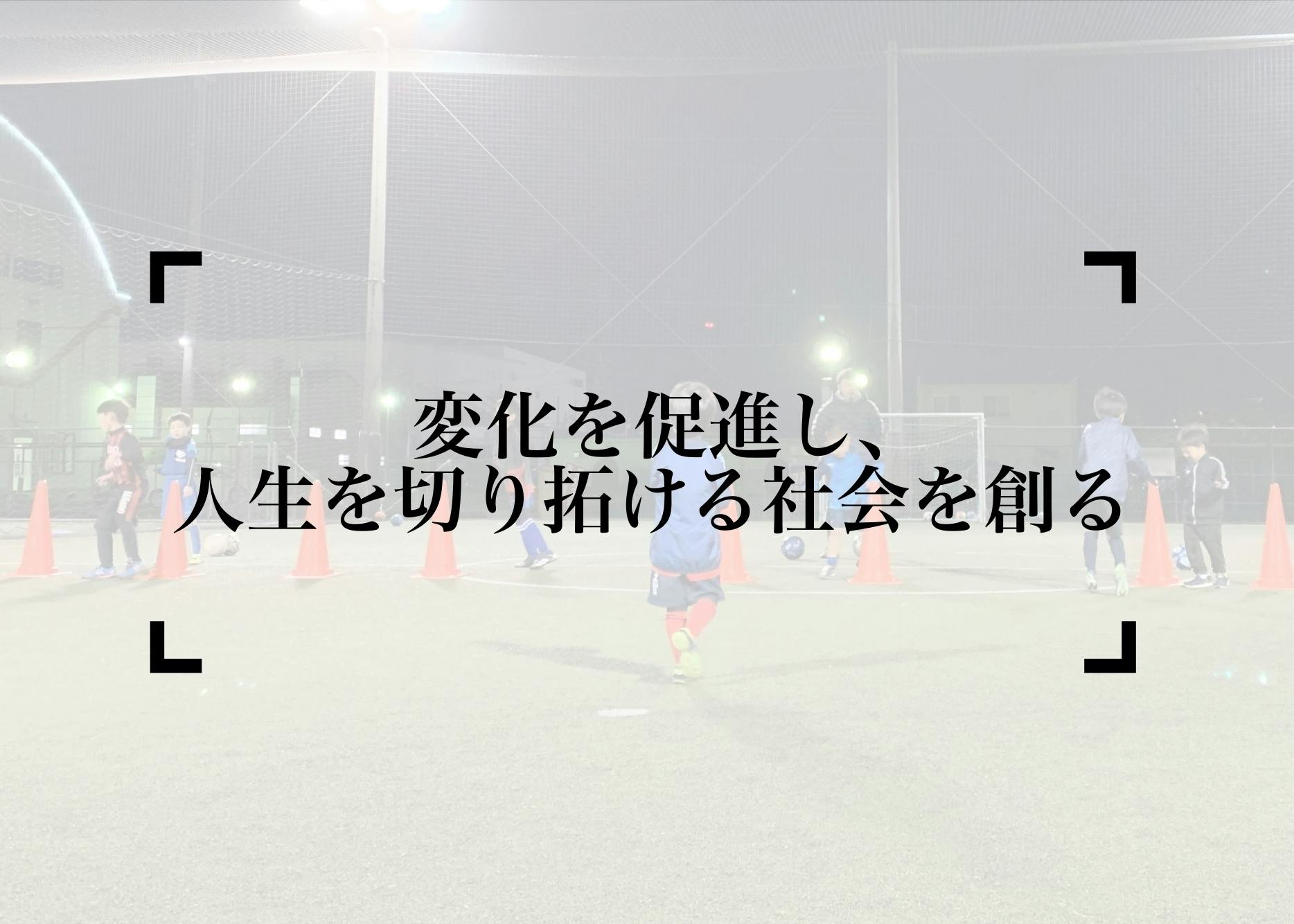 主な活動としては小学生年代のサッカー選手の育成ですが、子どもたちの成長や変化を関わってくださる方々と一緒に感じ、原動力を多くの人に与え、すべての人に成長や変化を与える組織にします。