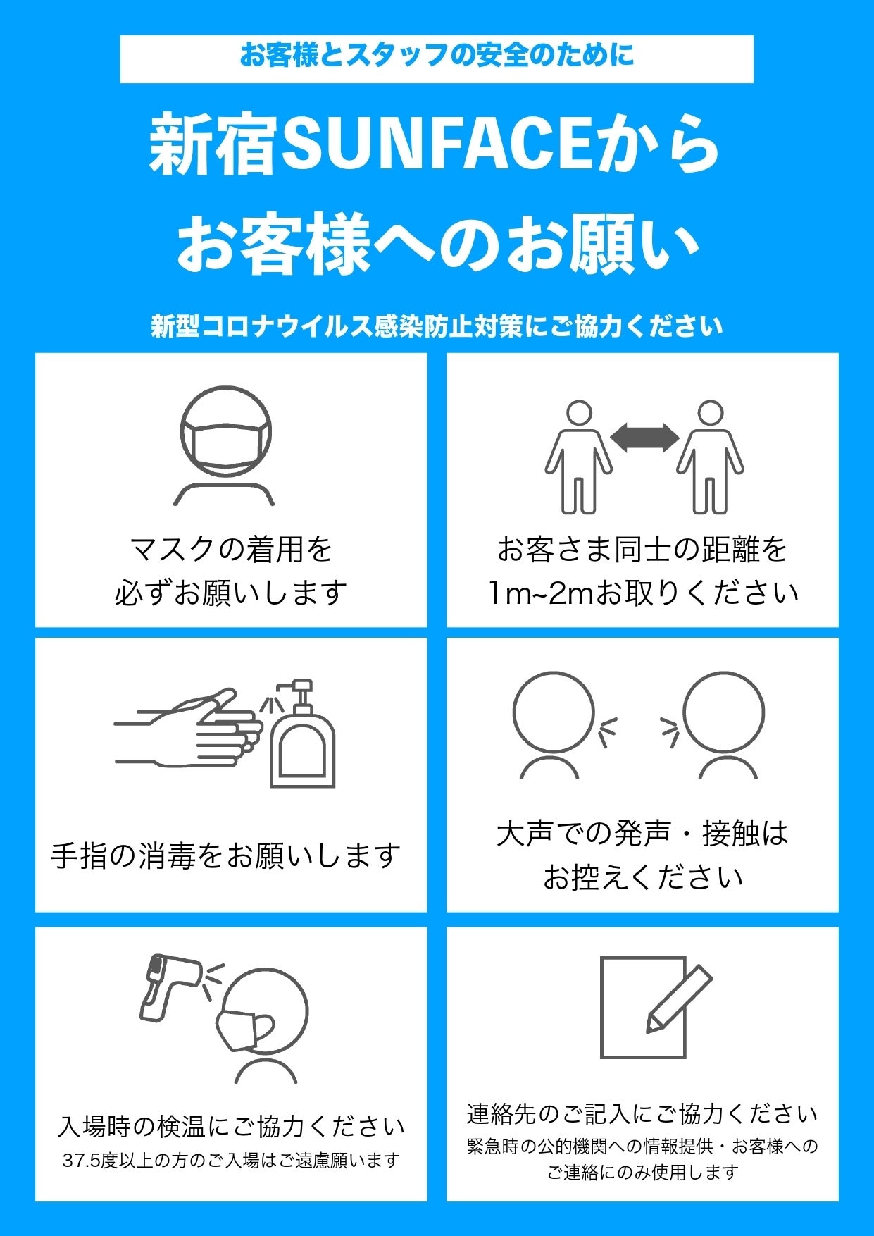 詳細は新宿SUNFACE様のコロナ対策ページをご覧ください。