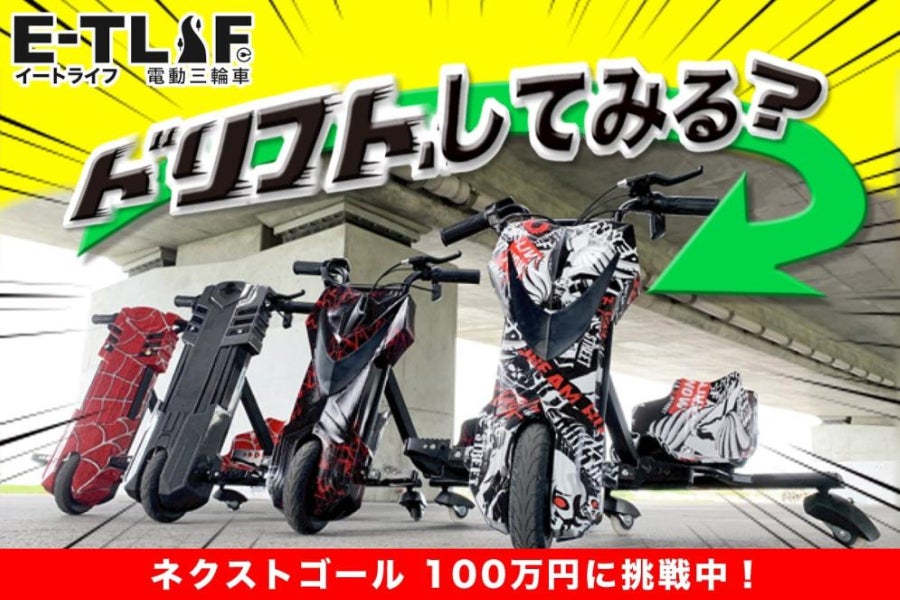 今回、中国の展示会で出会った、大人も子どもも楽しめる電動式三輪車「E-TLIF(イートライフ)」を、日本で初めて輸入することになりましたので、たくさんの方にこの商品の魅力を知っていただきたく、クラウドファンディングにチャレンジいたします。
