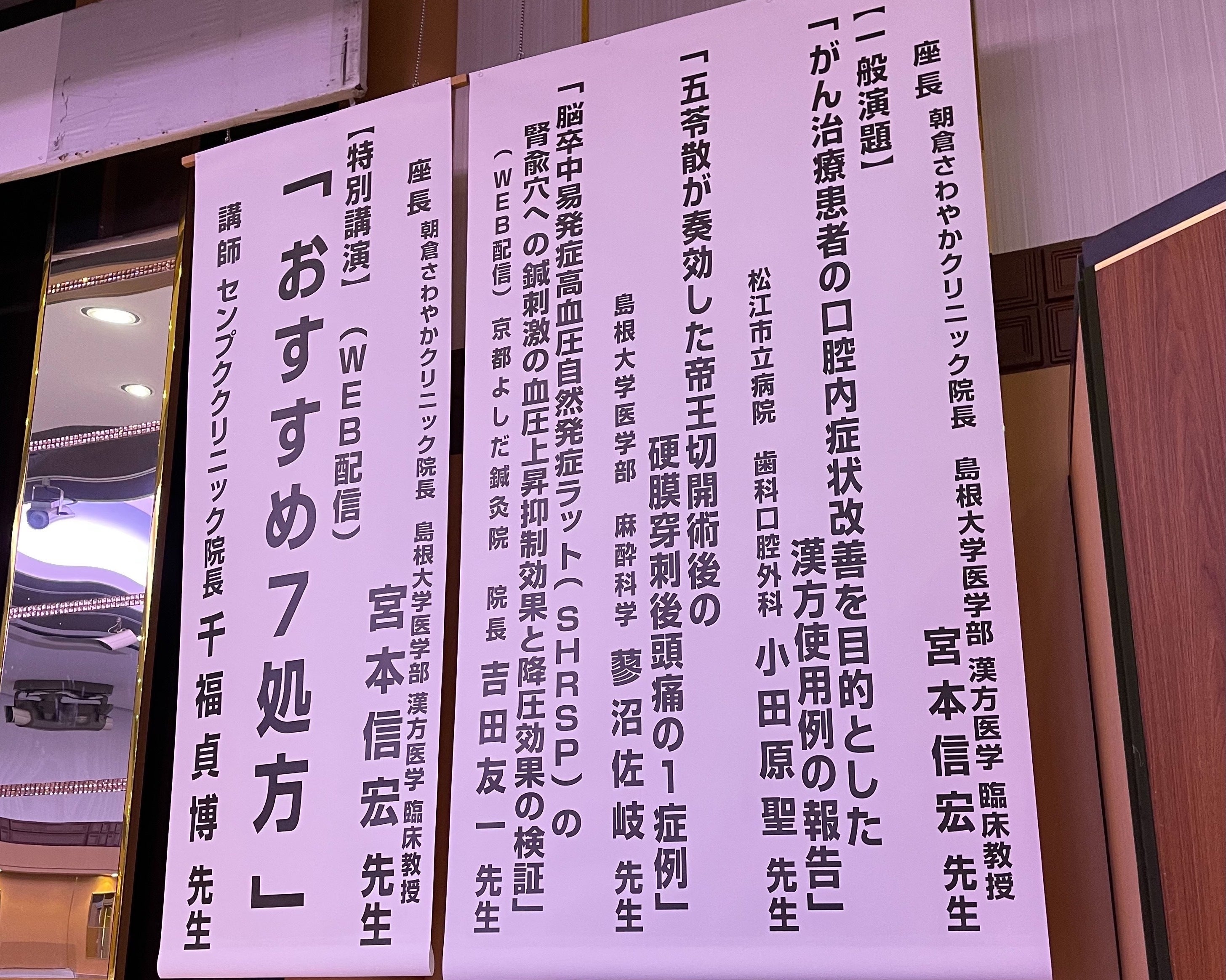 こんばんは。本日は、第25回島根中医学会(主催:株式会社 ツムラ)が開催されました。本会代表 宮本座長のもと、一般演題では、大学院での研究内容を発表させていただきました。フロアにいらっしゃる先生方から貴重なご質問をいただき、冷や汗をかきながらも無事に終えることができました。今後もみなさまの健康生活に寄与できるよう、学びを得て参ります。***出雲漢方研究会・公式ホームページ(代表挨拶、スタッフ紹介、定期コラム更新中!)https://www.izumo-kampo.com/*今後ともご声援ならびにプロジェクトへのご支援のほど、何卒よろしくお願い申し上げます。※当プロジェクト終了の5/31迄、毎日活動報告を行ってまいりますので、こちらも是非チェックしてみてください。(終了まで残り22日)それでは、また明日の更新をお楽しみに♩広報・PR担当 吉田