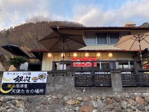 2020年、大月市駒橋から笹子町白野に移転した『ラーメンつけ麺銀次』。旧甲州街道に入り、少し奥に入っていく隠れ家的ラーメン屋。夜は居酒屋『天使たちの場所』に転身。東京に出て40年ラーメン屋で培った経験で大月に還元します。