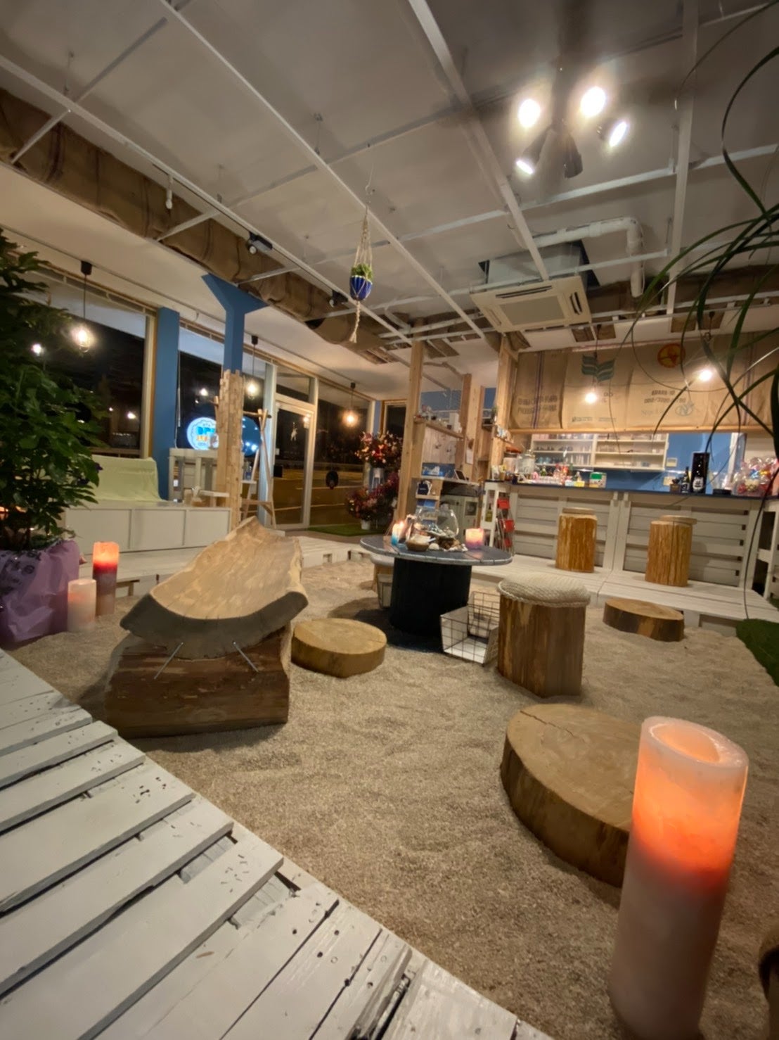 山梨に限らず、全国でもあまりない砂浜が店内にあるCafeを手作りで作りました。コロナ禍での開業で、なかなか外食の厳しい今ですが、甲州街道をお通りの際にコーヒー1杯でもテイクアウトして頂けますと嬉しいです。大月スマイルプロジェクトをきっかけにご支援、ご来店お待ちしております。