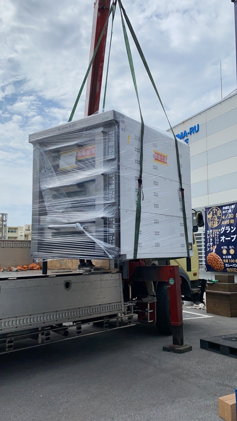 大人、数名がかりで店舗内へ移動→設置はかなりの重労働!!