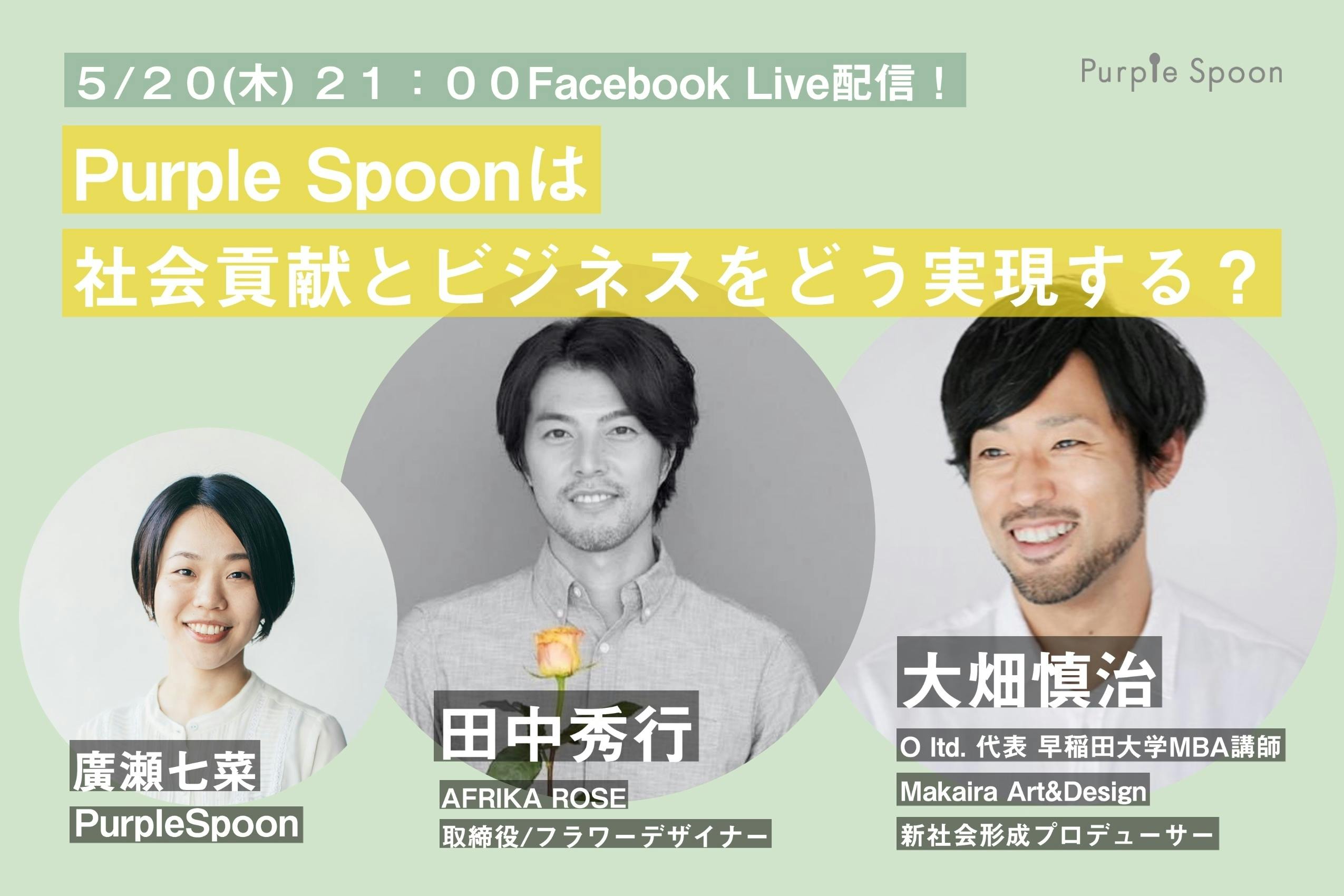 ゲストに、ソーシャルビジネスの大先輩であるAFRIKA ROSE 取締役の田中秀行さんと、O ltd. 代表/早稲田大学MBA講師/Makaira Art&Design 新社会形成プロデューサーの大畑慎治さんをお招きして、Purple Spoonの未来について語ります!