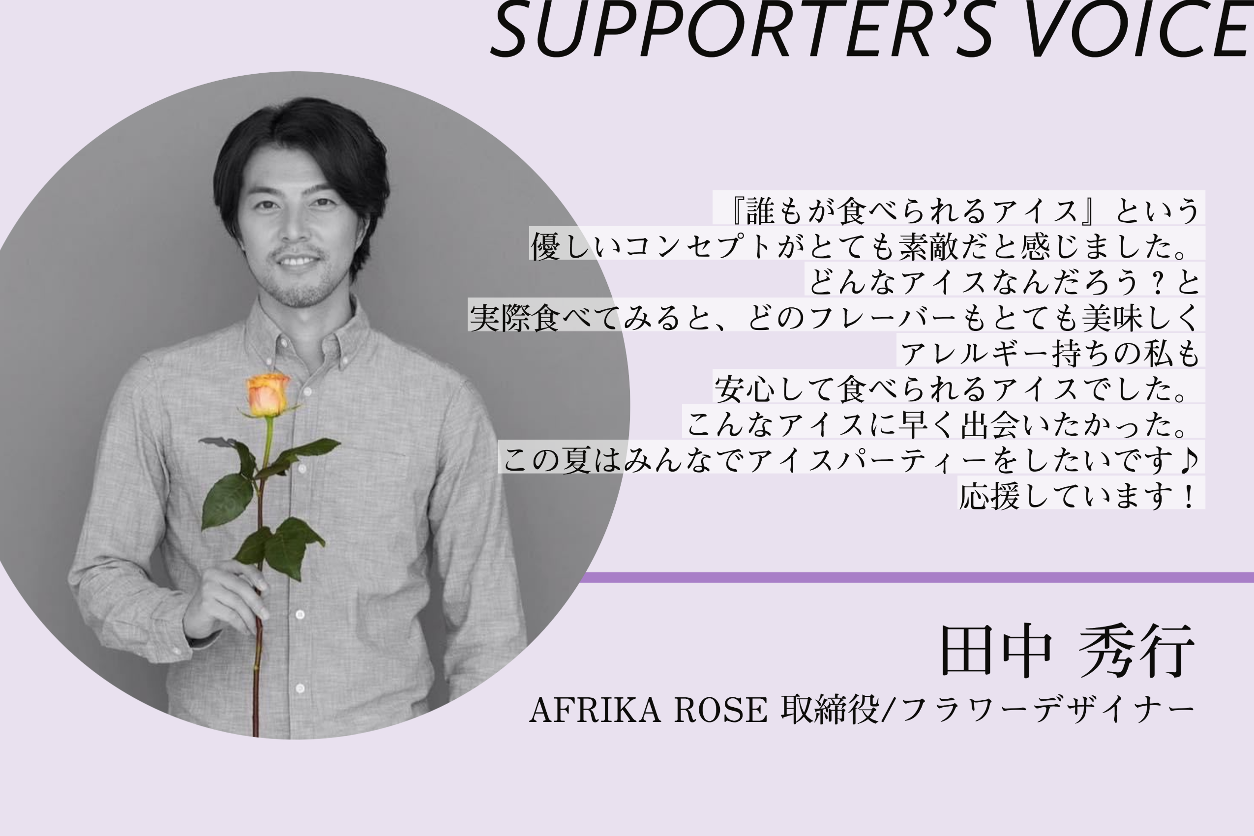 【ライブ配信のお知らせ】皆様いつも多大なるご支援をいただき、誠にありがとうございます。5月9日(日)22:00から、メンバーによるインスタライブを実施します。Purple Spoonを立ち上げた背景や、メンバーの想い、アイスクリームへのこだわりなど、色々とお話させていただきたいと思います。ライブ配信中は、ぜひコメントでご質問をお寄せください!ぜひ事前に、Purple Spoonのインスタグラムのフォローをお願いします。Instagram: www.instagram.com/purplespoon_ice/ーーーーPurple Spoonのクラウドファンディングプロジェクトは2021年5月23日まで行います。現在は、更に高い目標に向けてNEXT GOAL300万円を目指しています。より便利な購入方法の整備や素敵なデザインを準備して、皆様にお届けしたいと考えています。SNSでは最新情報を随時発信していますのでフォロー&シェアも頂ければ幸いです。Instagram: www.instagram.com/purplespoon_ice/FB:www.facebook.com/purplespoon.iceTwitter:https://twitter.com/PurplespoonI引き続き、応援のほどよろしくお願いいたします。Purple Spoon 一同
