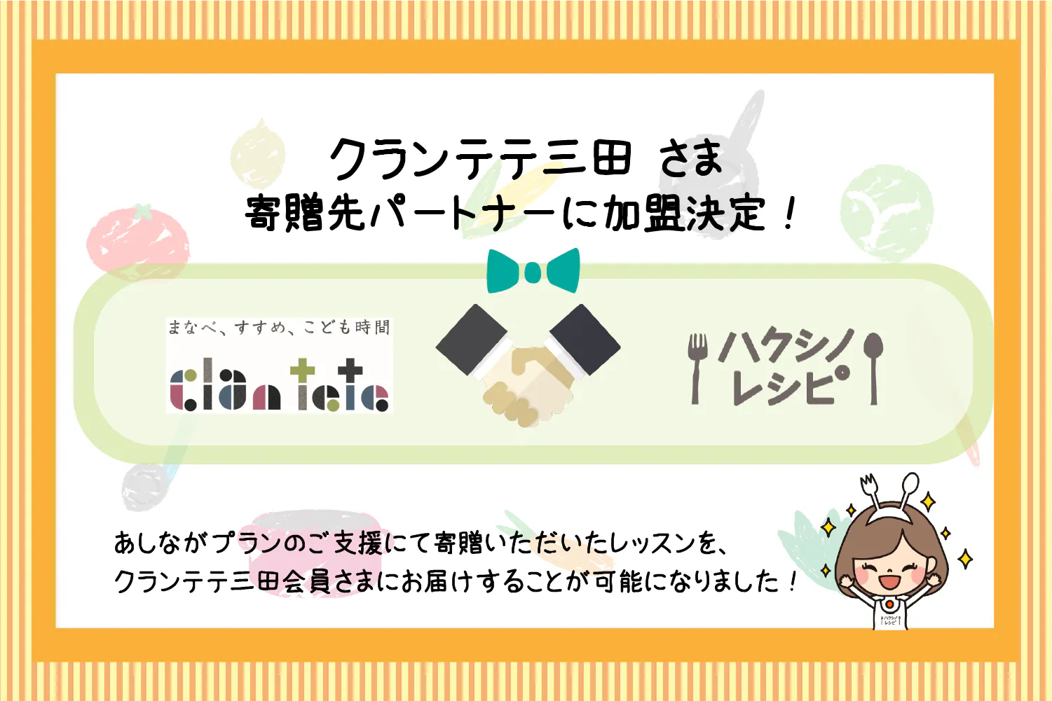 「みずから育つ力を伸ばす」というコンセプトはハクシノレシピにも通ずるものなので、パートナーとして加盟いただけることを心より嬉しく思います。