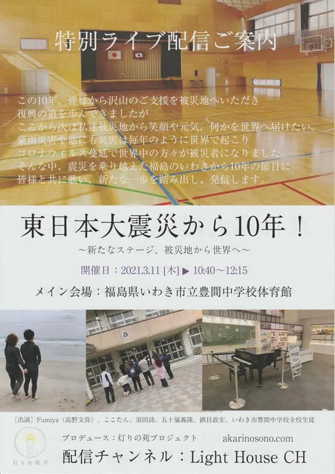この度は、東日本大震災の10年の節目に特別ライブ配信を主催し