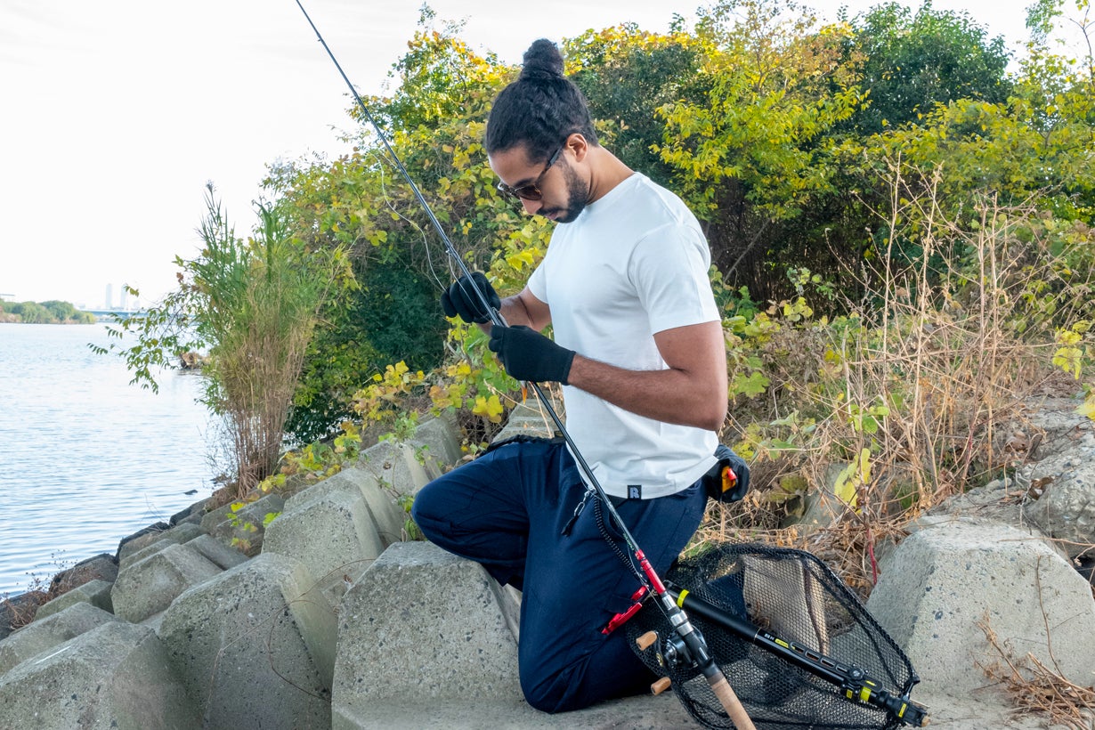 「釣りの時だけ履くパンツ」だとお財布にも優しくない。「普段使い」もできるように、シルエットにもこだわりました。