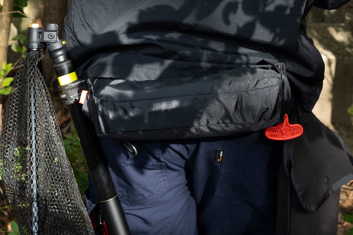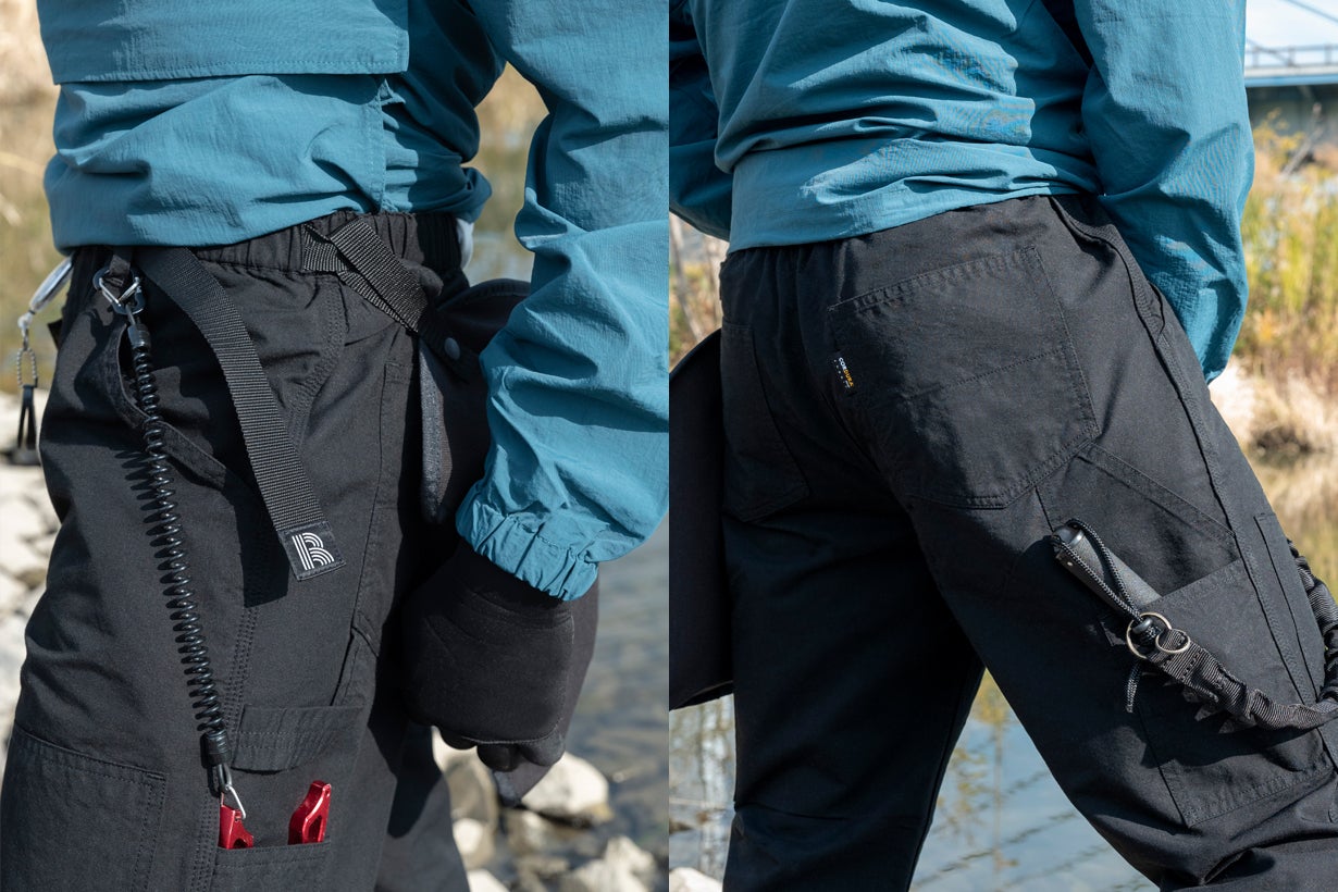 また、ぺインターパンツのハンマーループに加え、腰の辺りにループをもう一つ追加。腰に「ランディングネット」を挿すことも可能です。