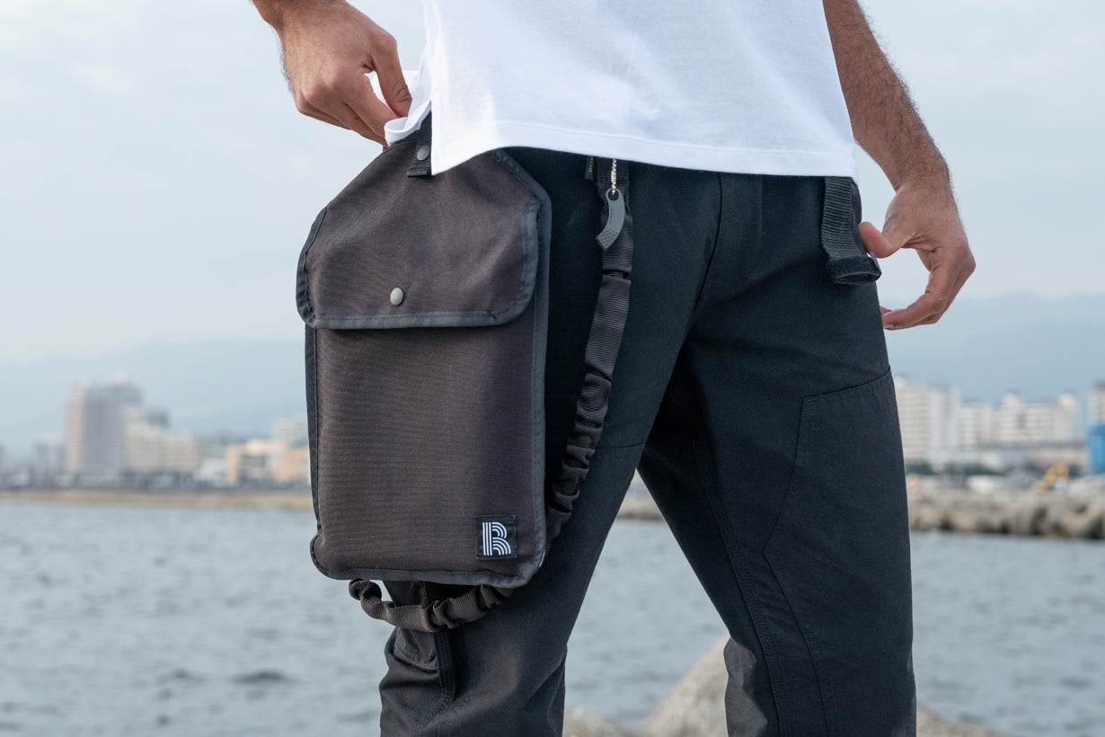 そこで、腰からぶら下げる事が可能な「Hanging Bag(ハンギングバッグ)」を作って、収納を増やす事ができるようにし、「KOBANZAME」と名付けました。