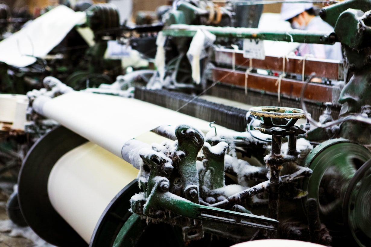 倉敷は、国内で生産されている帆布の約70%がそこでつくられているほどの一大生産地。その中でも半数以上の生地を織っているのが、創業130年(1888年創業)の歴史を誇る老舗の工場「TAKEYARI」です。「TAKEYARI」は帆布を日本で最初に製造した会社で、入り口には「帆布 発祥の地」と書かれた柱が建てられています。