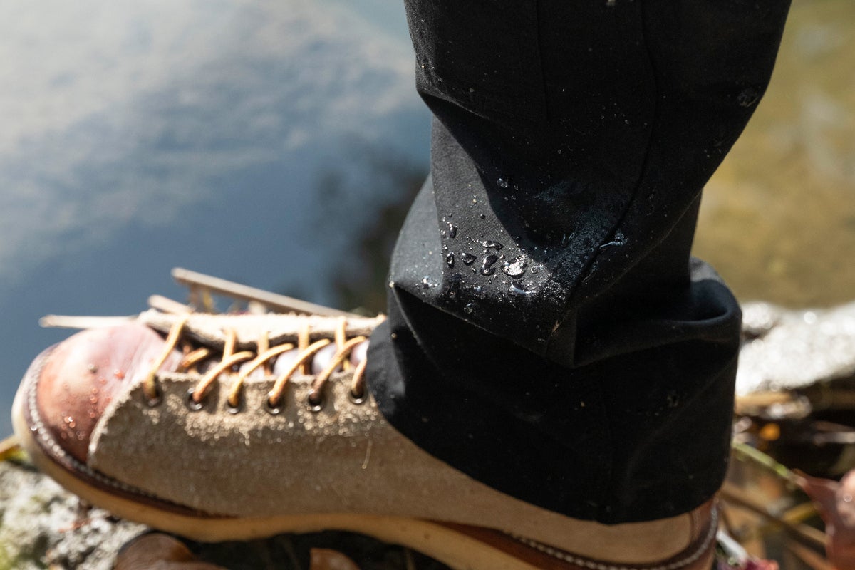 「Fisherman's Workpants|HASU」のネーミングの元になったのが、超撥水加工の仕組みです。(夏の釣りの人気ターゲット「鰣(ハス)」にもかけました。)