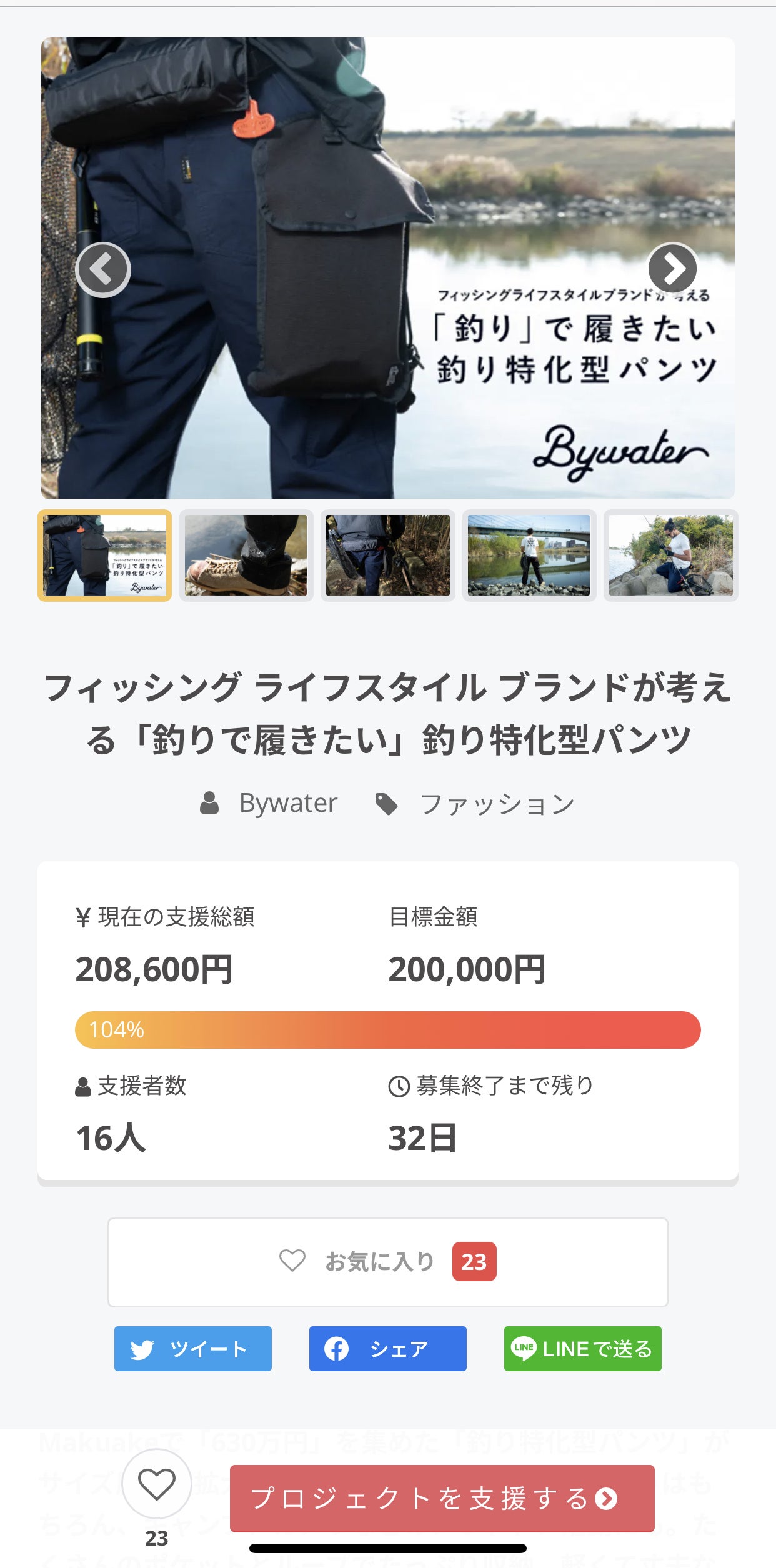 ※サイズ展開が増えているとはいえ、同じアイテムでのクラウドファンディングですし、初めてのCAMPFIREですので、思ったより支援額が伸びない可能性は頭にあったので、目標はMakuakeと同じ20万円にしたのですが、他の事例を見て「Makuakeの1/4程度はいけるのではないか?」と思って、もう少し強気な目標設定も考えたりしていました…。(今となってはそんな強気な数字にしなくてよかったと思ったりしています。)