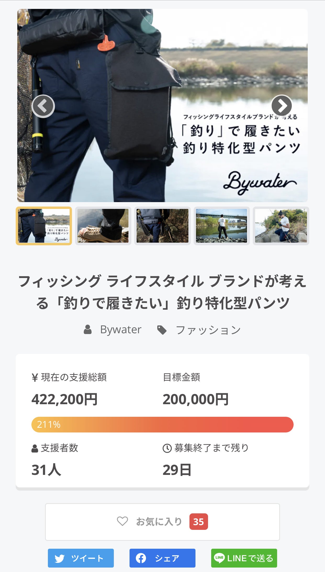 サイズ展開が増えているとはいえ、同じアイテムでのクラウドファンディングですし、初めてのCAMPFIREですので、支援額が伸びない可能性は頭にあったので目標はMakuakeと同じ20万円にしたのですが、他の事例を見て「Makuakeの1/4程度はいけるのではないか?」と思って、もう少し強気な目標設定も考えたりしていました…。(今となってはそんな強気な数字にしなくてよかったと思ったりしています。)