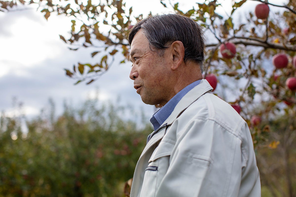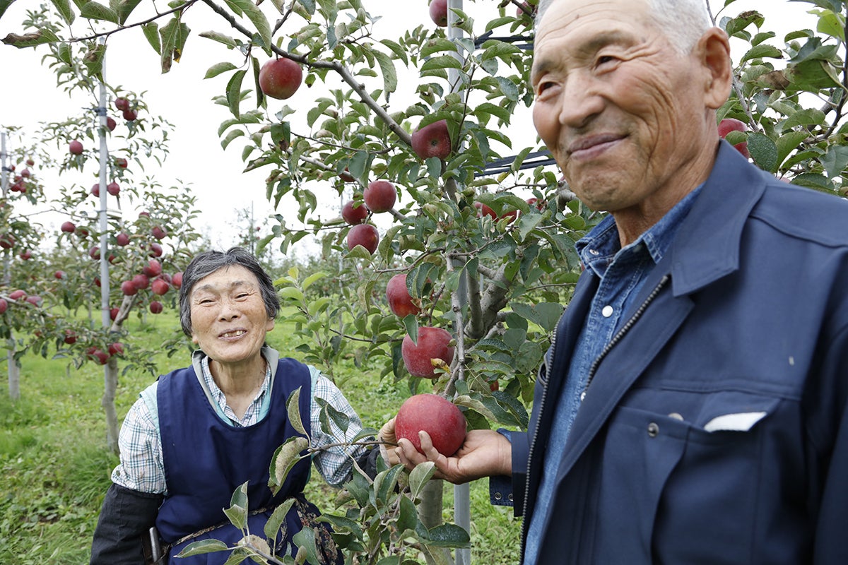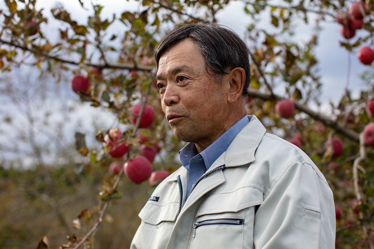 もう一品は青森県五戸町、八甲田連峰を見渡せる標高200メートルという高所に位置する北上農園で、園主の北上俊博さんが育てる有機JAS認証のりんご。