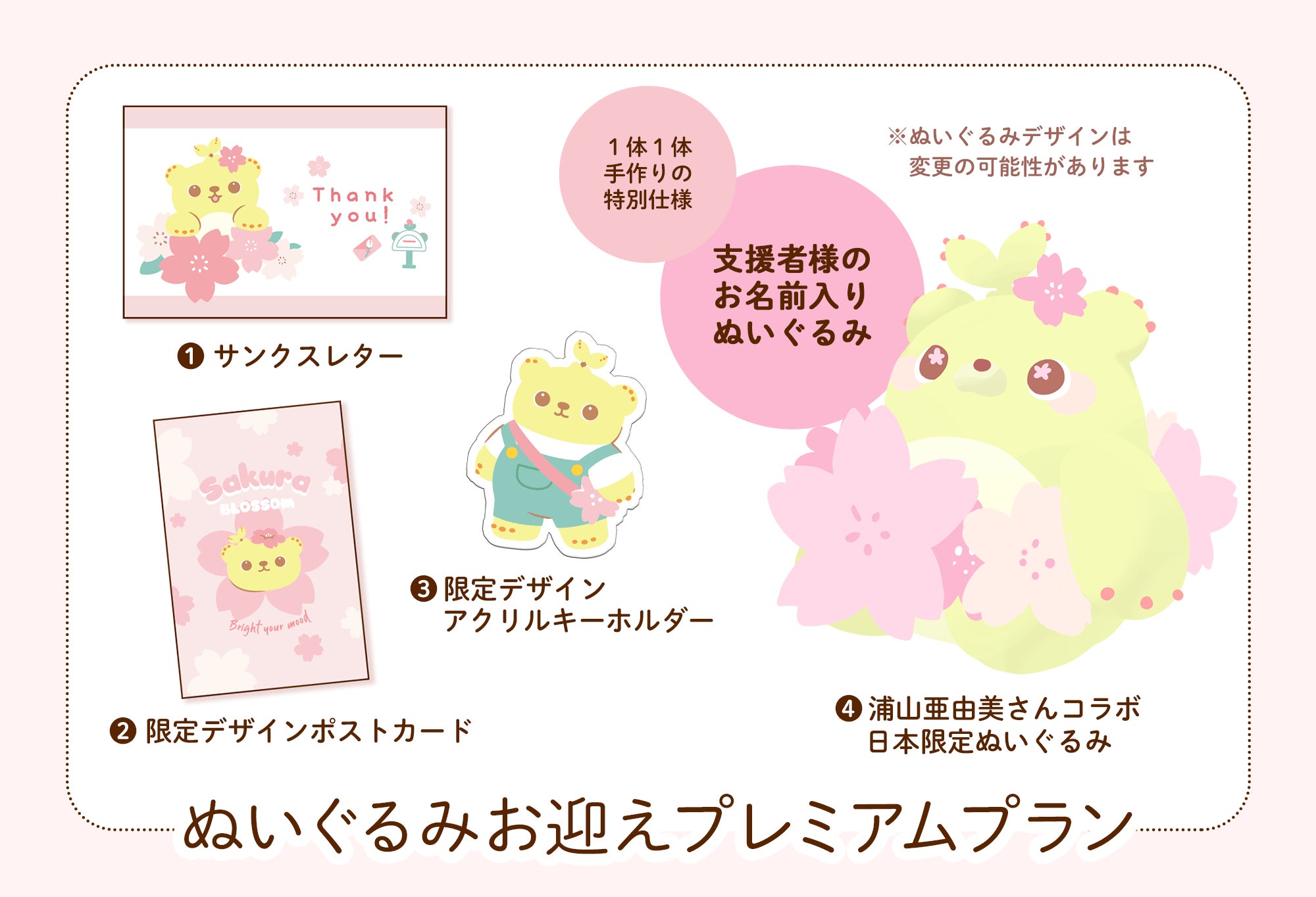 お名前入りぬいぐるみとクラウドファンディング限定グッズをお迎えできるプランです!
