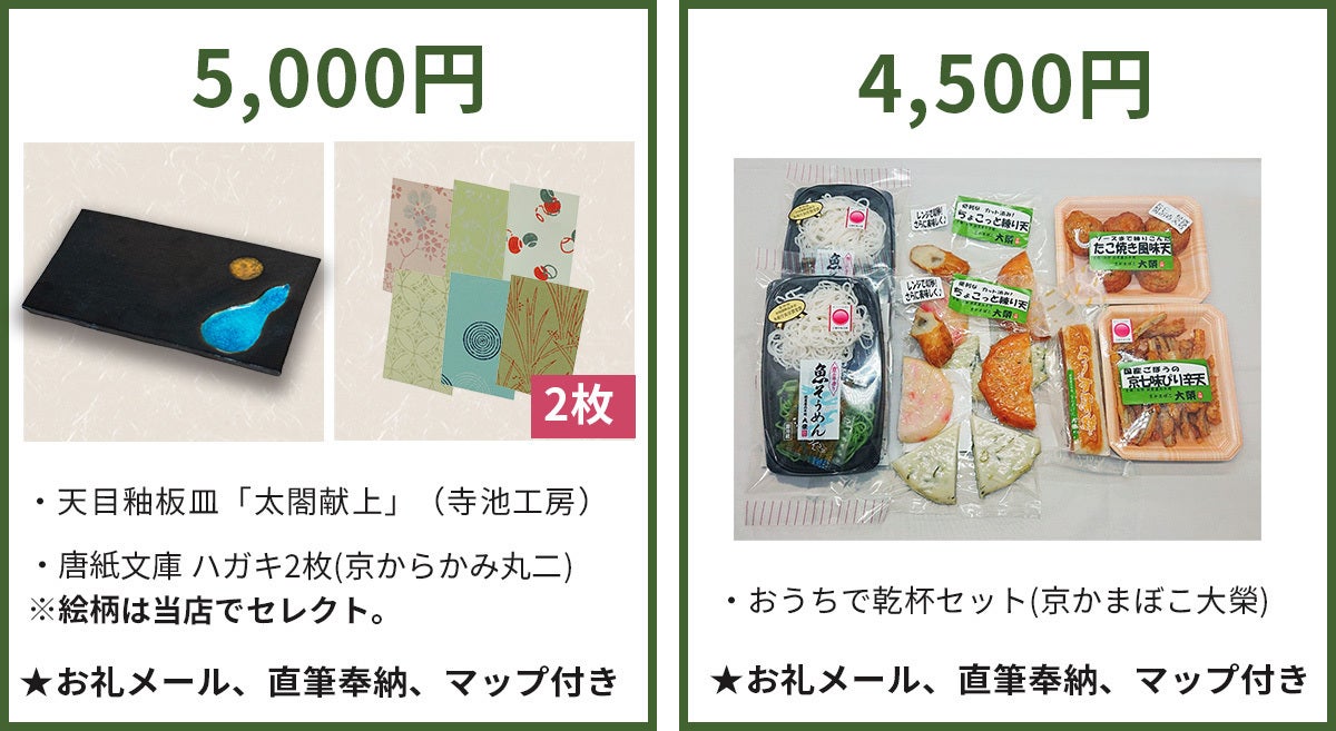 沢山ご支援いただくことにより、北山杉、西陣織、金彩工芸、京焼・清水焼、京畳、京からかみ、京都の金、銀の産業、京の酒等、伝統技術に触れてもらう機会を作り、新たな活用方法を考えるきっかけにもなるとうれしいですね。もちろん蒲鉾も(笑)。