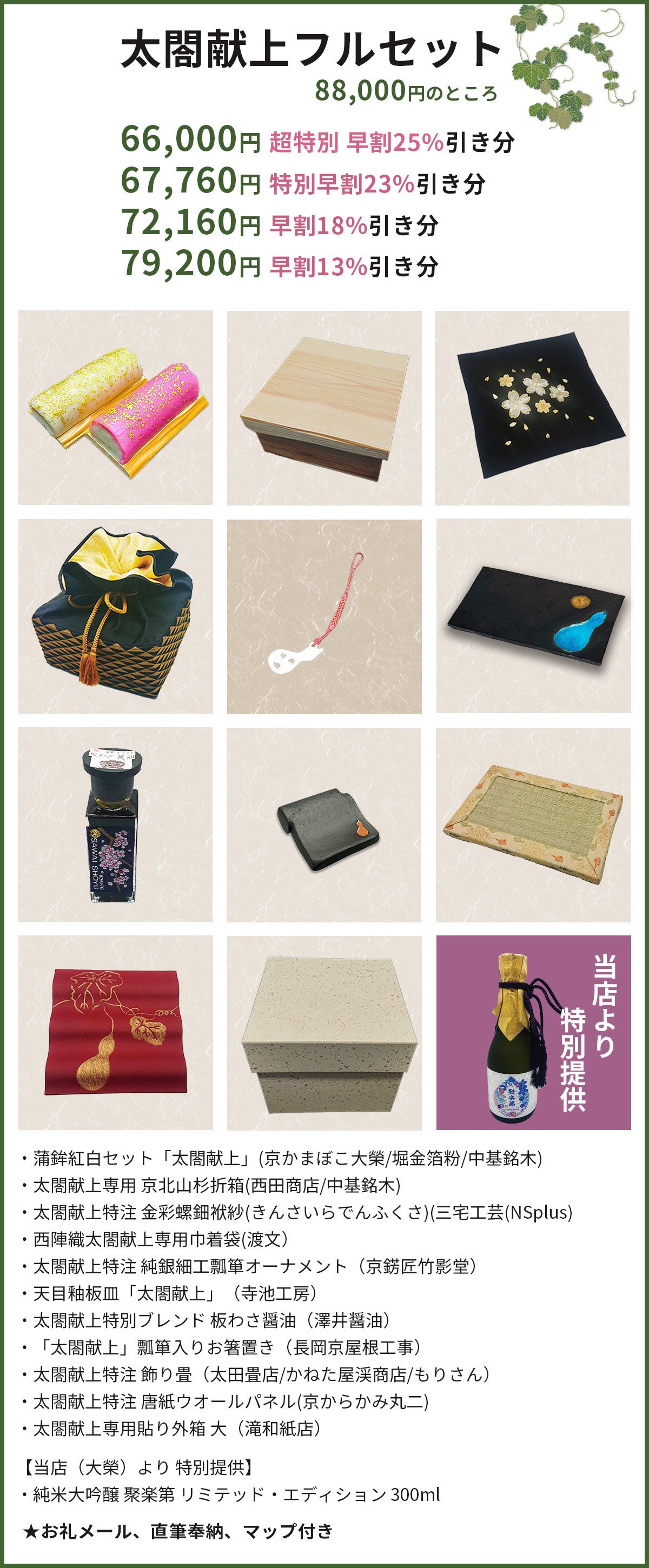 「聚楽第」大吟醸酒リミテッドエディションをご一緒にお送りさせていただきます。