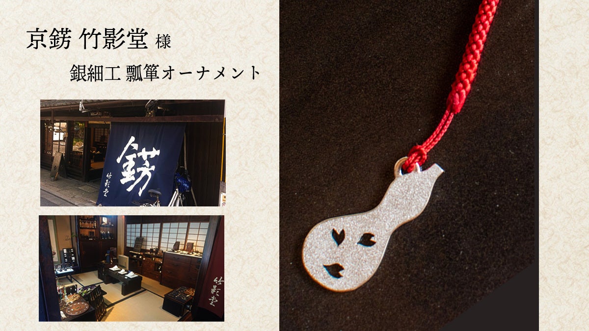 竹影堂様が銀細工のスペシャリストでいらっしゃることから、純銀で瓢箪と、太閤花見の桜の花びらの透かしをデザインしたものをお作りいただきます。