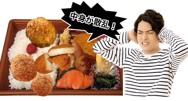 「コンビニ弁当が傾いて、汁気が漏れた~」