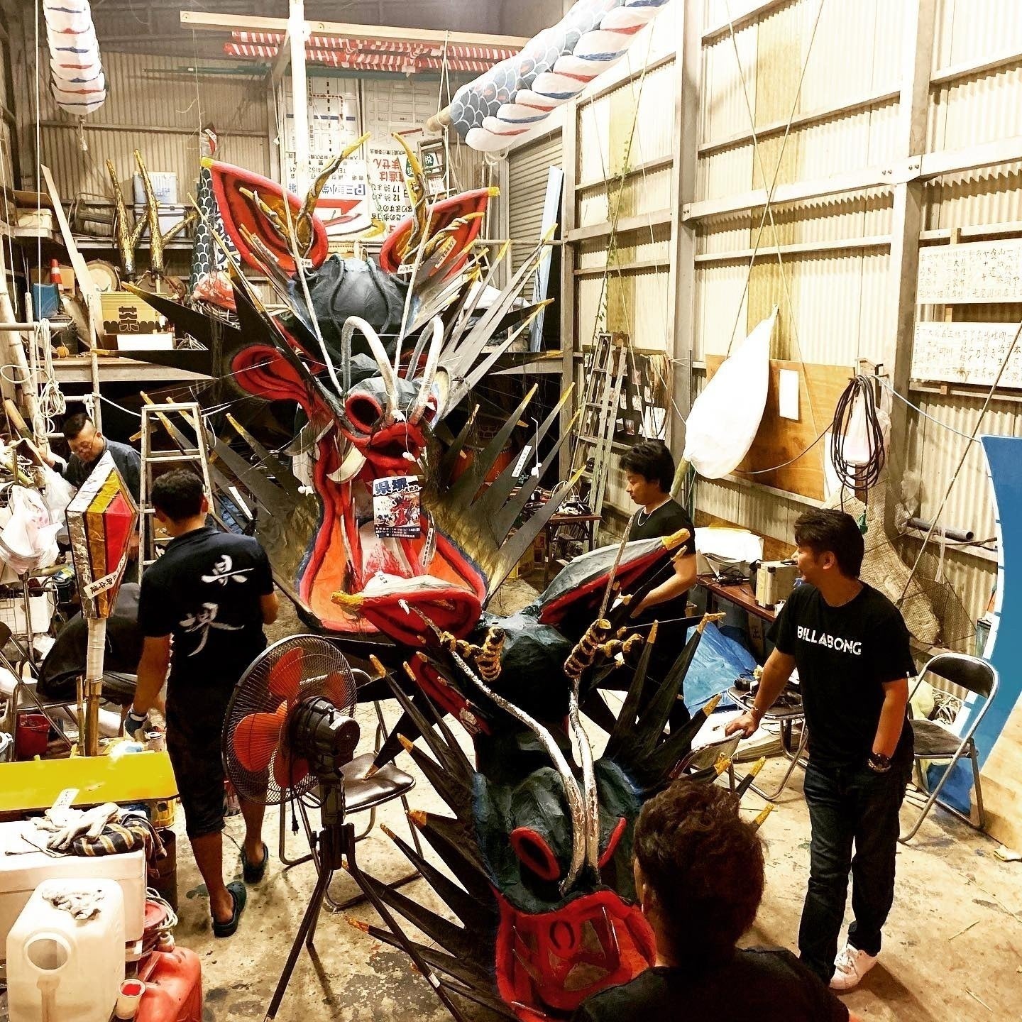 旧船津中学校にて県堺大蛇山製作スタートしました!