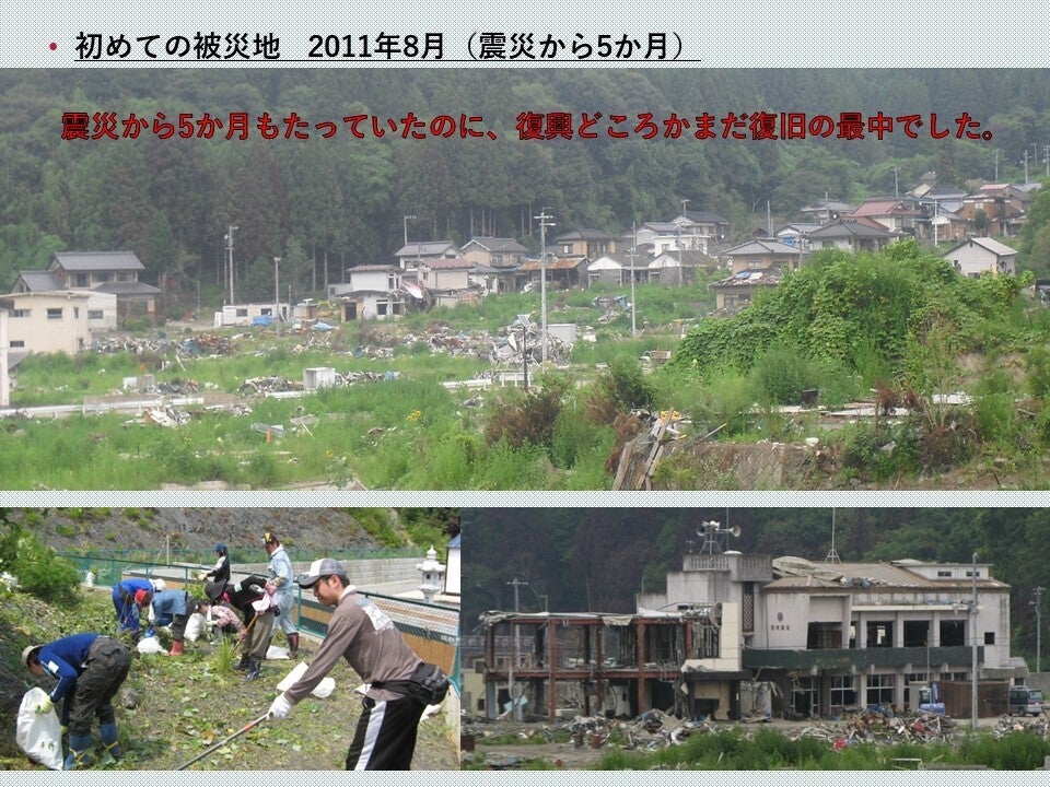 震災から5ヶ月目の8月、初めての被災地で全国から集まる沢山のボランティアたちに出会いました。