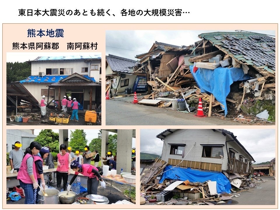 また、毎年のように各地で発生する大規模災害被災地へも赴き、この9年間の活動で192名(のべ446名)