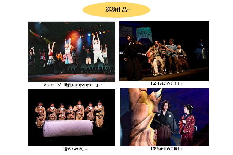 主な活動としては高等学校の公演を中心とした地方公演と東京での本公演があり、学校公演では太平洋戦争末期の「特攻隊」を描いた「爺さんの空」と坂本龍馬を主人公にした「龍馬からの手紙」の2作品で巡演中です。ともに座付きである時風静恵の書下ろしで、ヒューマニズムあふれる作風は学校関係者から高い評価をいただき、生徒が入れ替わる3年ごとに取り上げていただく作品も多くなってきております。近年、本公演の方は関係業界との新たな関係構築の立場から劇団外からの出演も募り、その作品にふさわしいキャスト、スタッフでの上演をモットーに取り組んでおります。