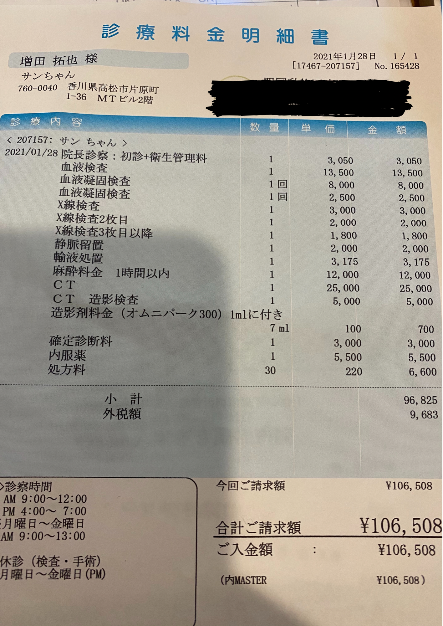 検査代 111,348円(4,840円+106,508円)