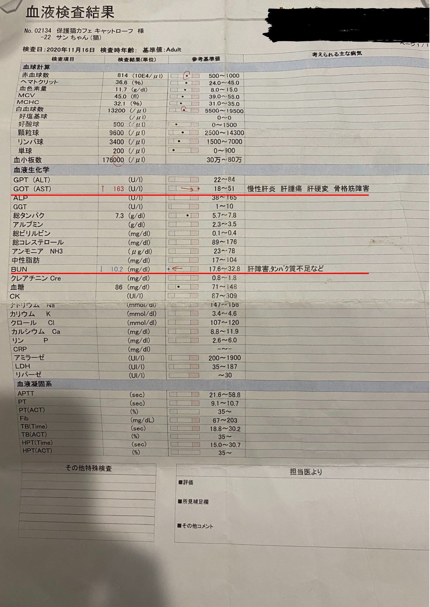 11月16日血液検査結果