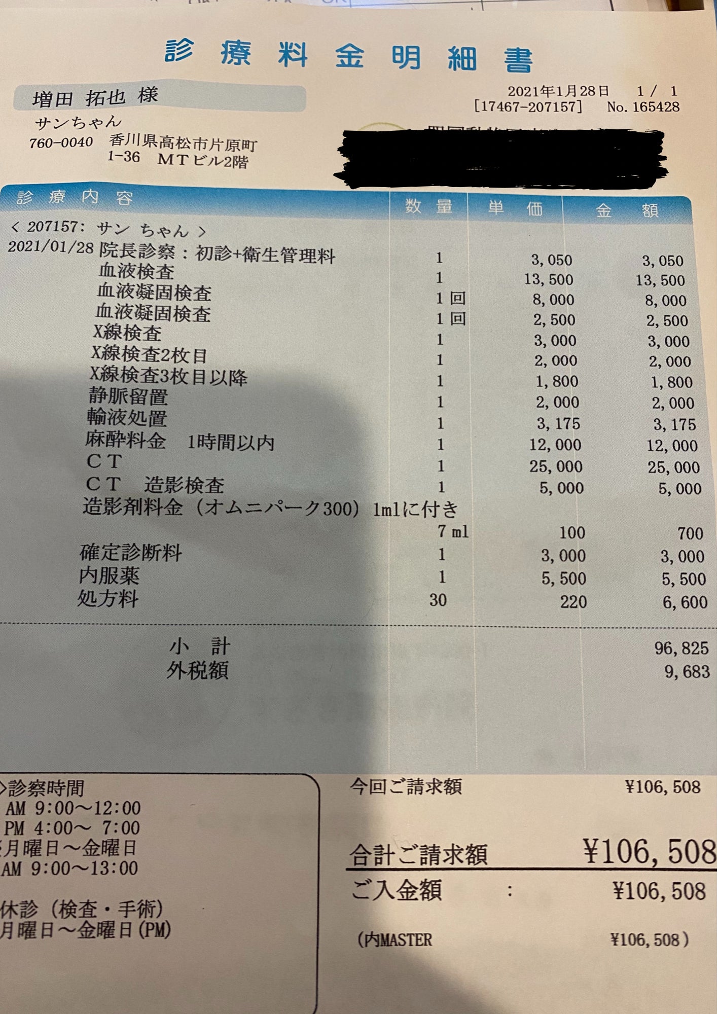 検査代 111,348円(4,840円+106,508円)