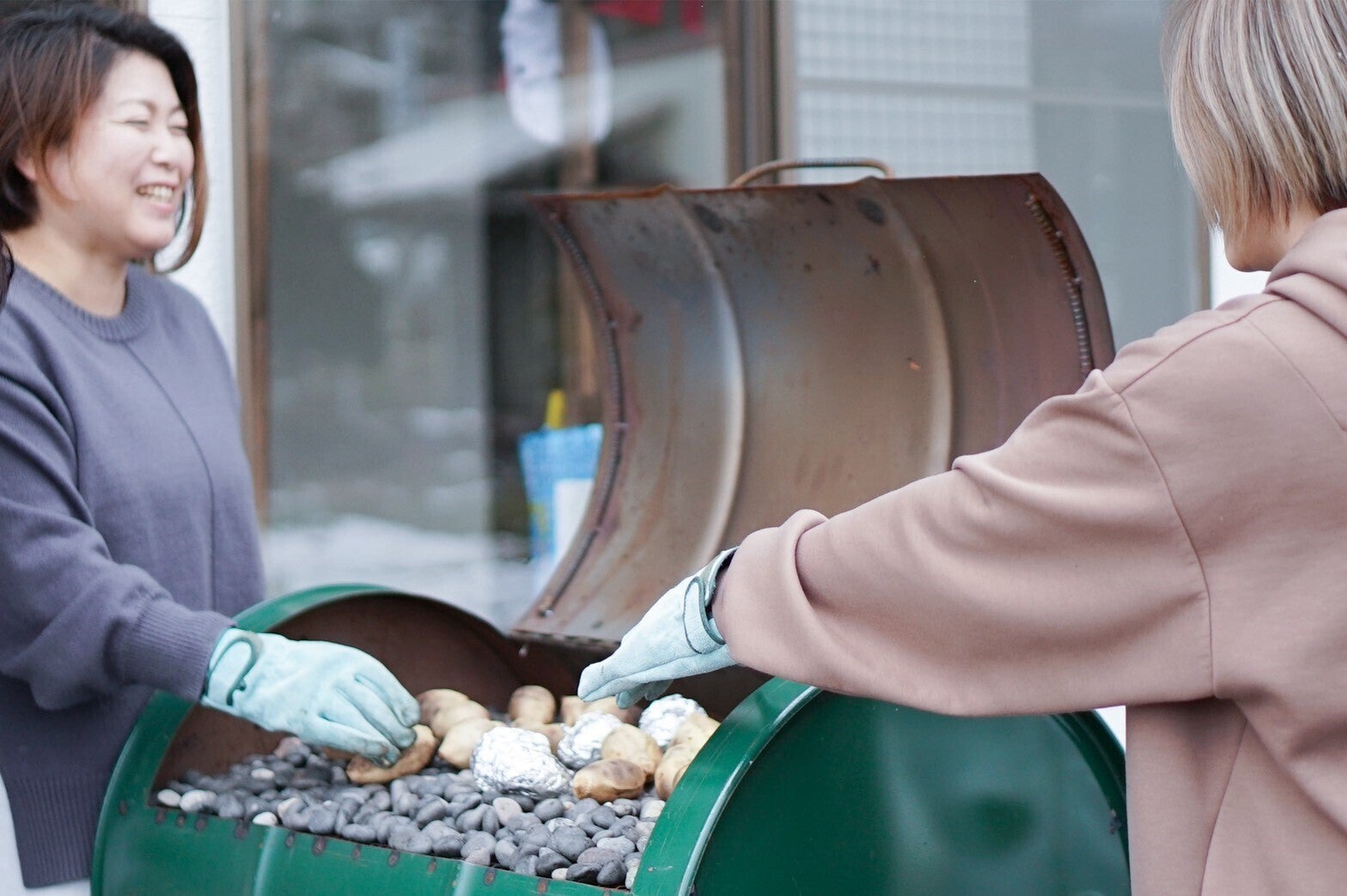 《父手作りの石焼き芋機。父と母は仕事の合間を縫って開業の手伝いをしてくれています。》