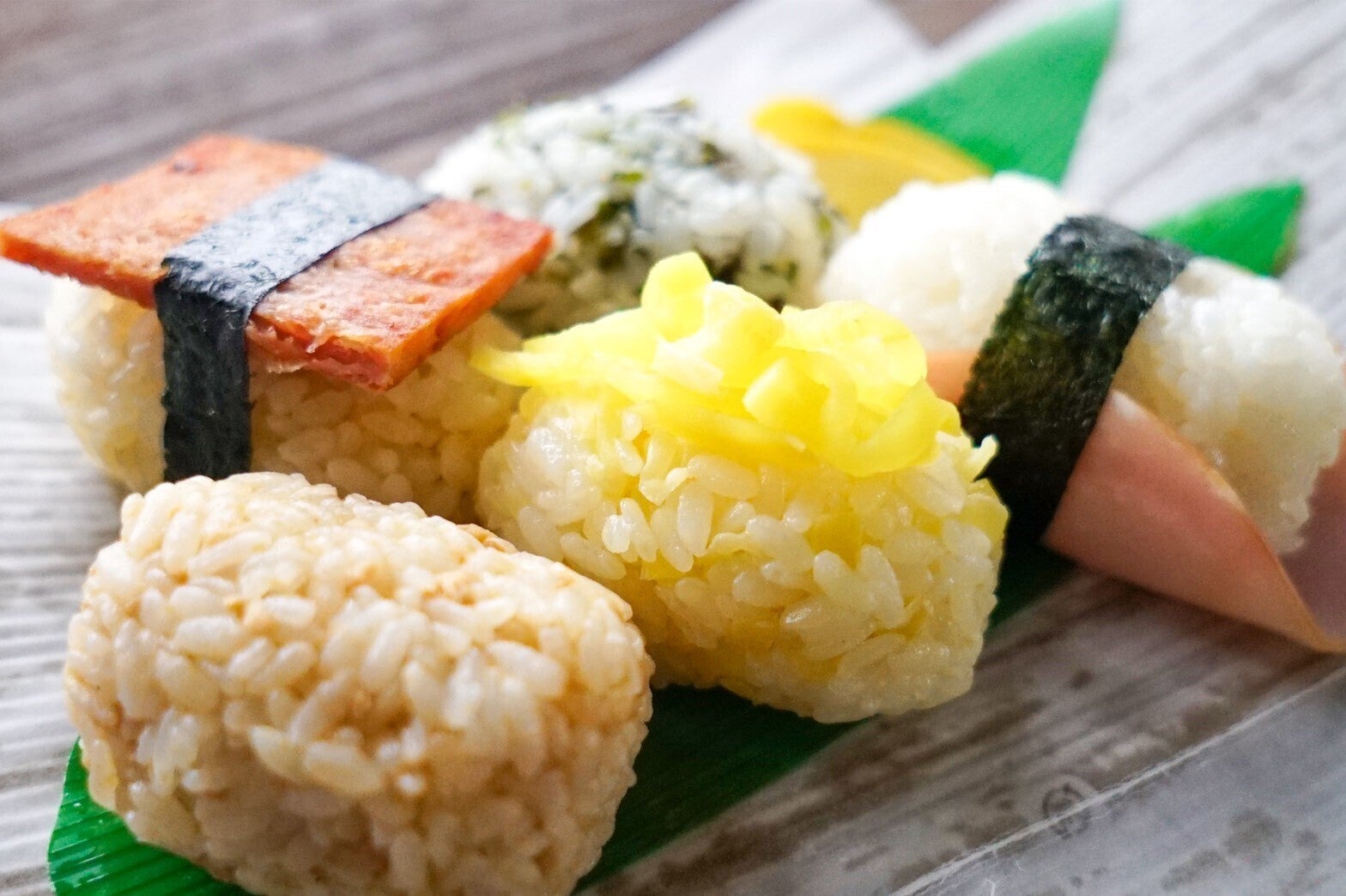 《おむすび一例。スパムおむすびやたくマヨおむすびなど、