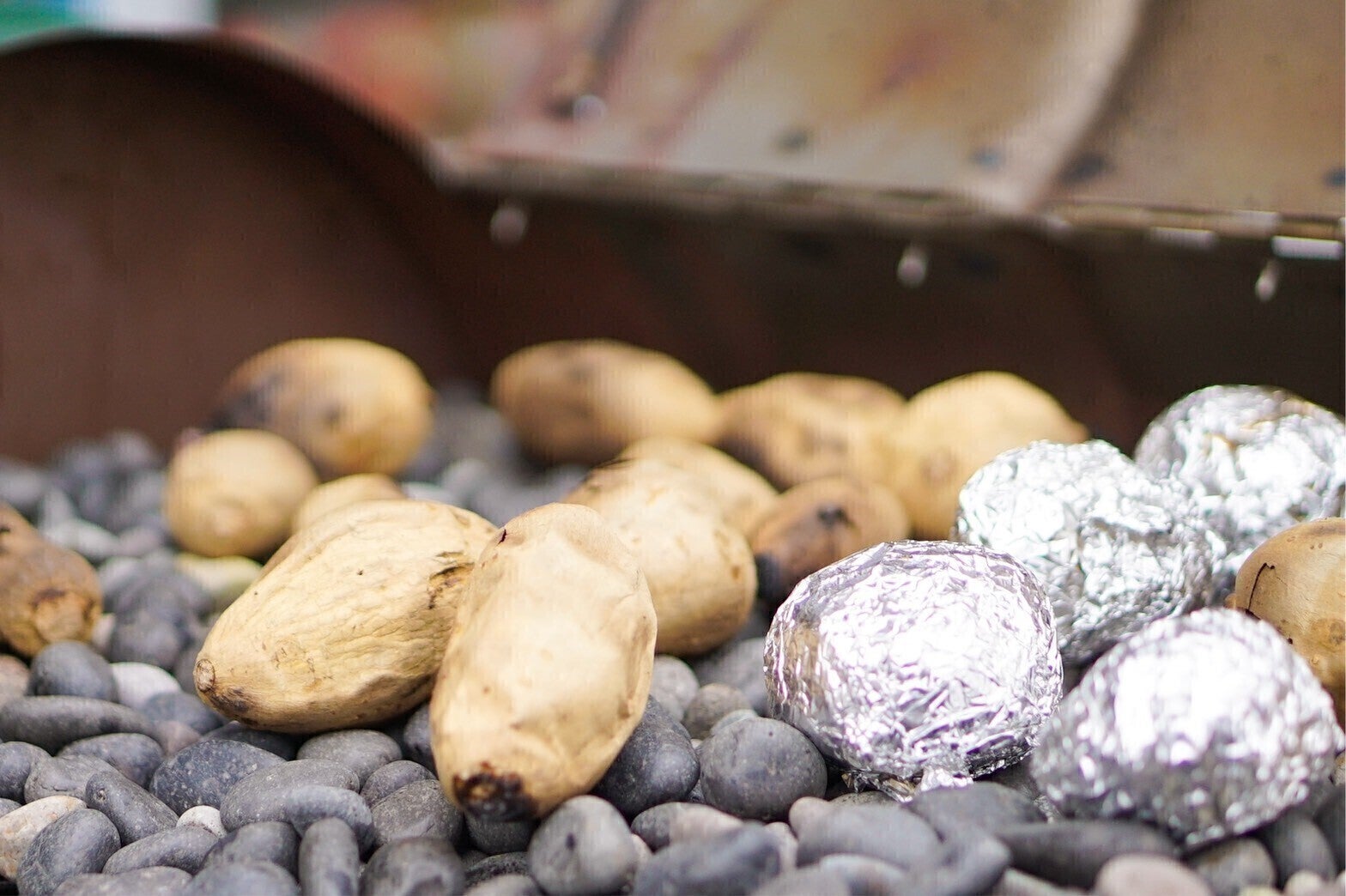 《父手作りの石焼き芋機。父と母は仕事の合間を縫って開業の手伝いをしてくれています。》