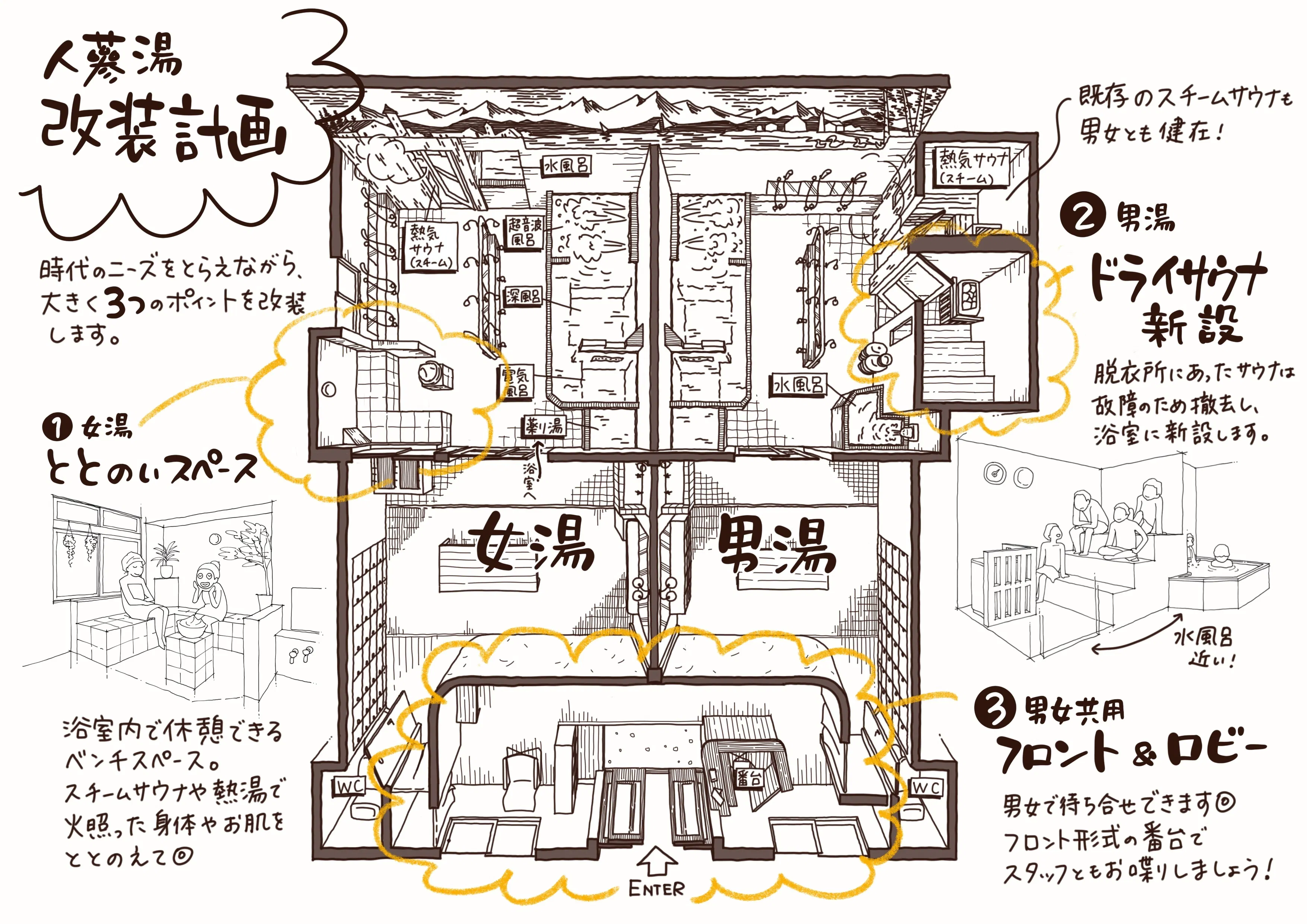 そんな豊橋で活躍する専門家・クリエイターの方々にも、人蔘湯復活にご協力いただいています。