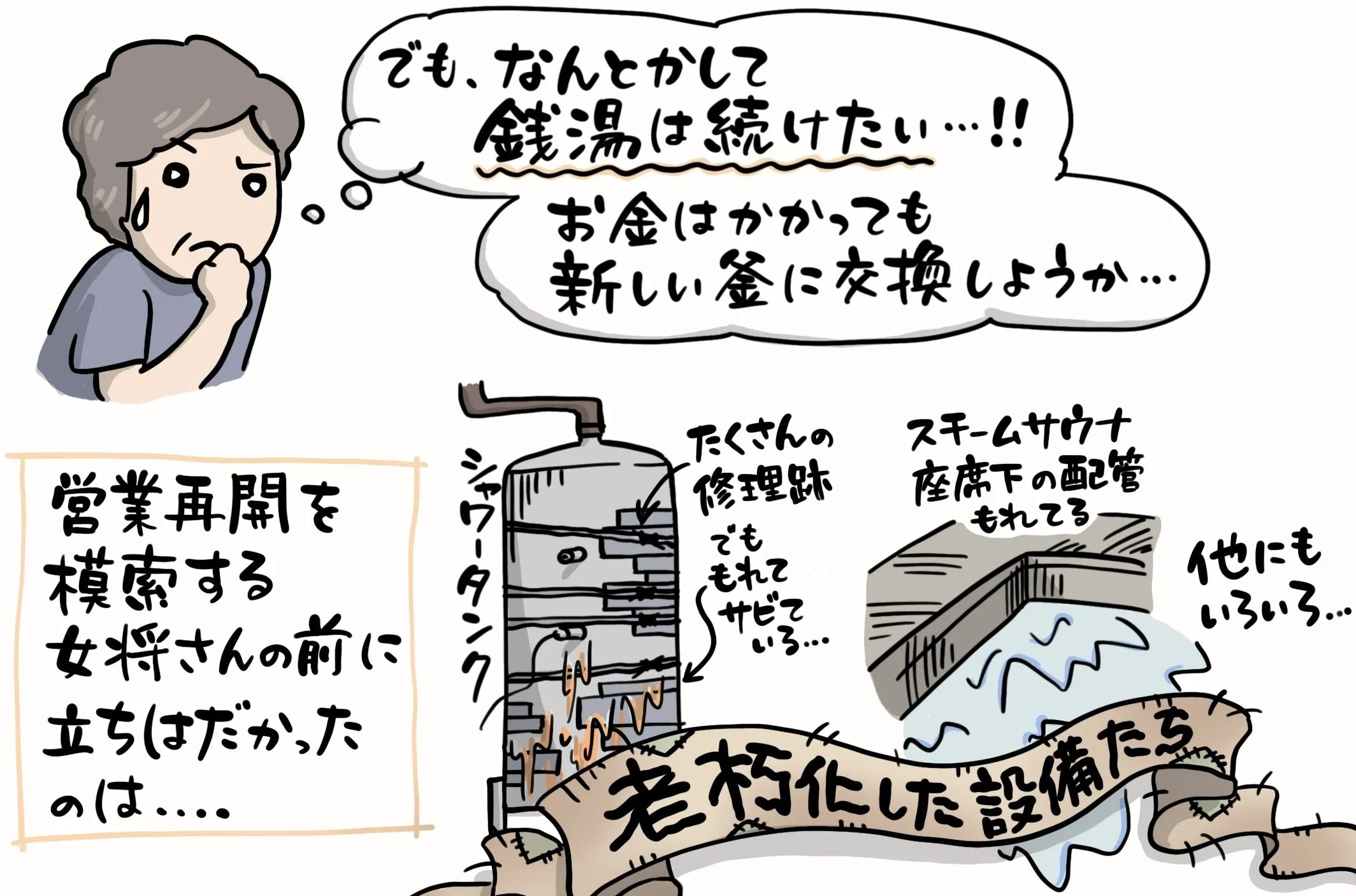 既に経営している銭湯で大きな故障など発生しても、修理費用が出せないかもしれません。