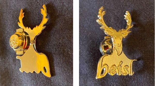 ピンブローチ と Tシャツ を感謝のお手紙 とともにお送りいたします。
