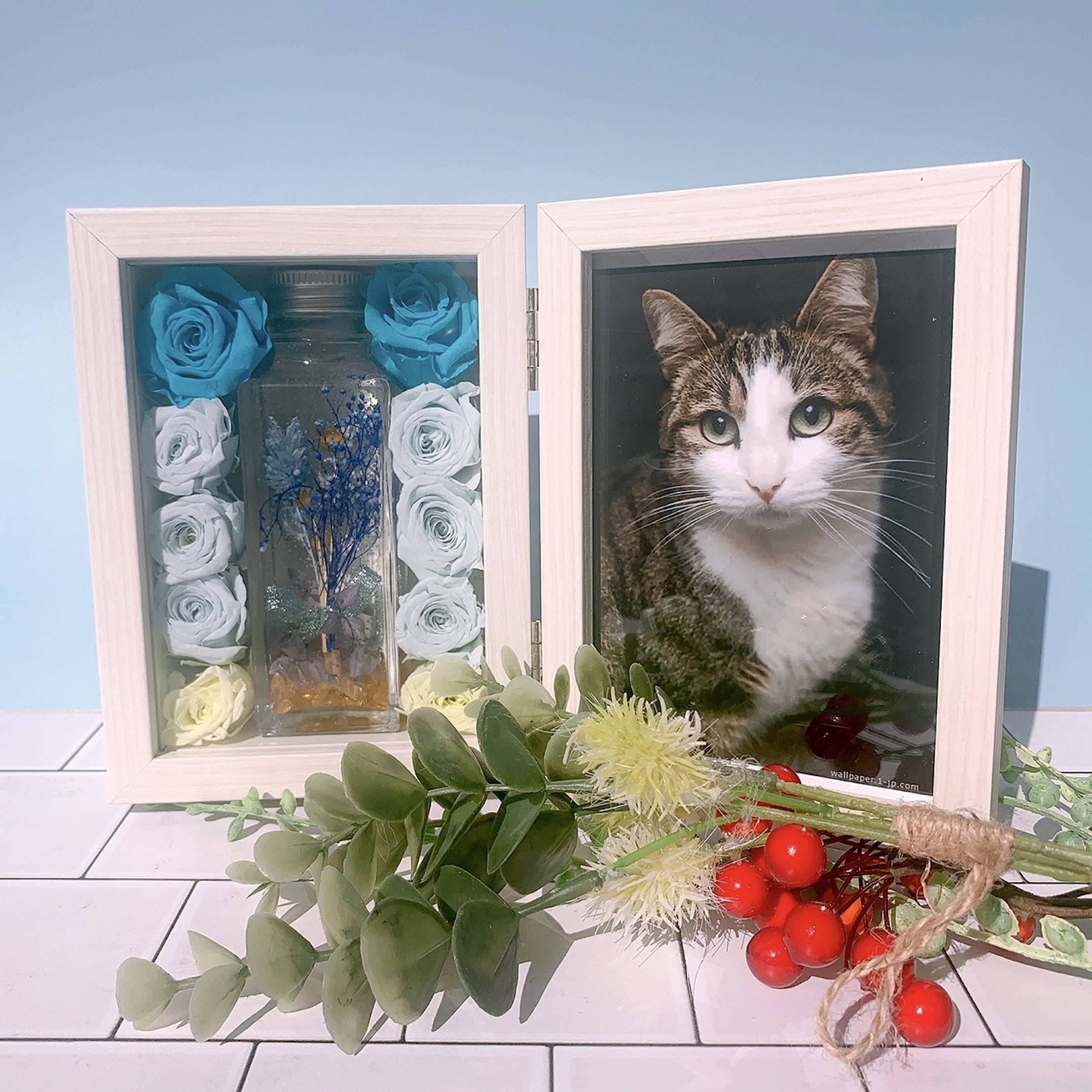 家族が集まるリビングの棚やキャビネットの上、飼い主様の寝室に、いつも一緒を感じて下さい。