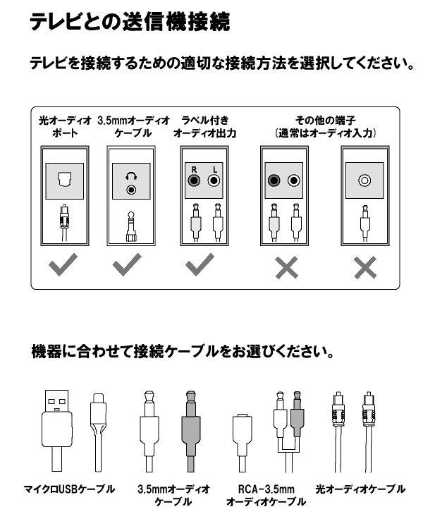私は送信機をテレビと光学ケーブルで接続をしておいて使用をしています。
