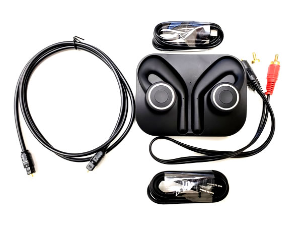 送信機には多数のAUXと光デジタル対応で様々なデバイスの音を送信可能です。