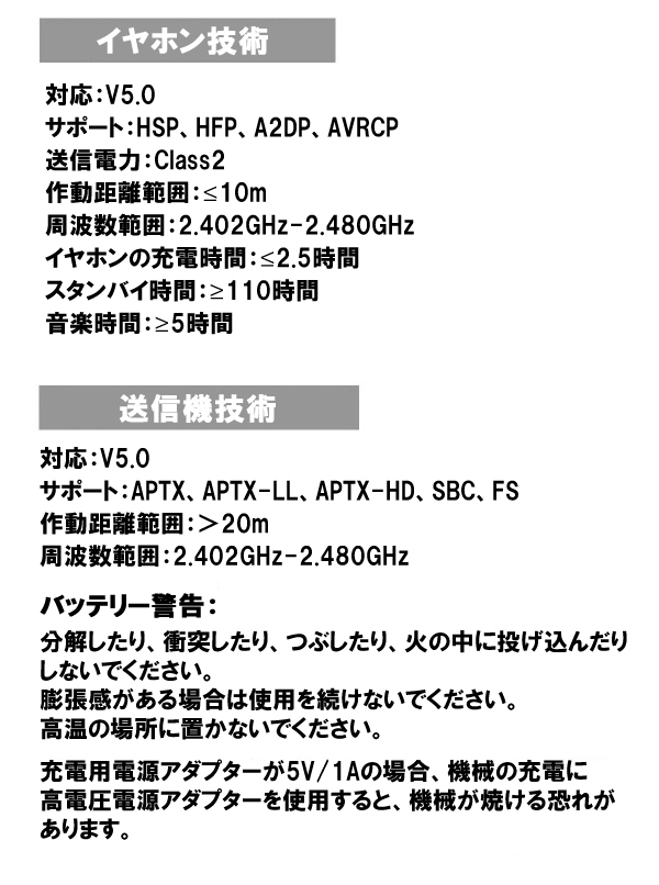 ・サポート APTX、APTX-LL、APTX-HD、SBC、FS