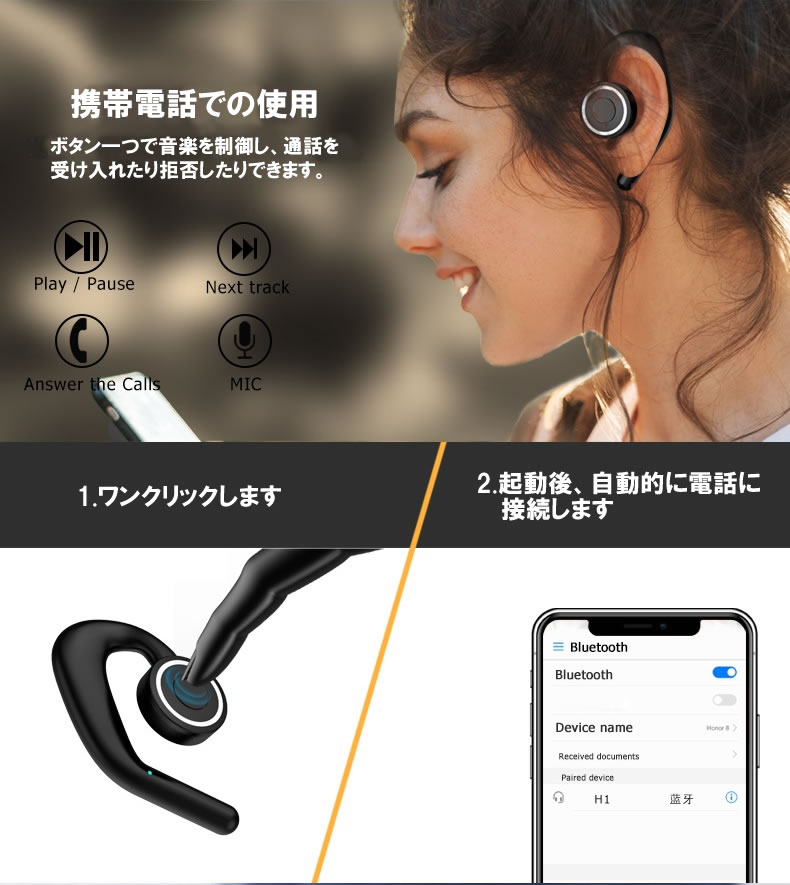 自動ペアリング機能付きの為、装着時に過去に接続した端末に自動的にペアリングを行います。