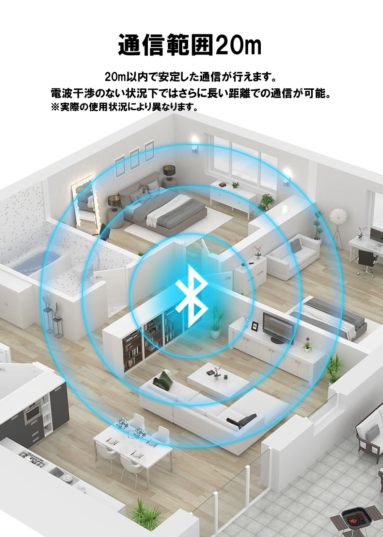 A.接続されたデバイスが有効通信範囲(10m)を外れると、信号が微弱になり切断されます。