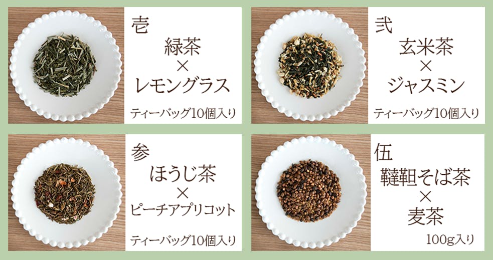 ※「伍 韃靼そば茶×麦茶」のみ、100g入りでティーバッグ加工はしておりませんのでご注意ください。