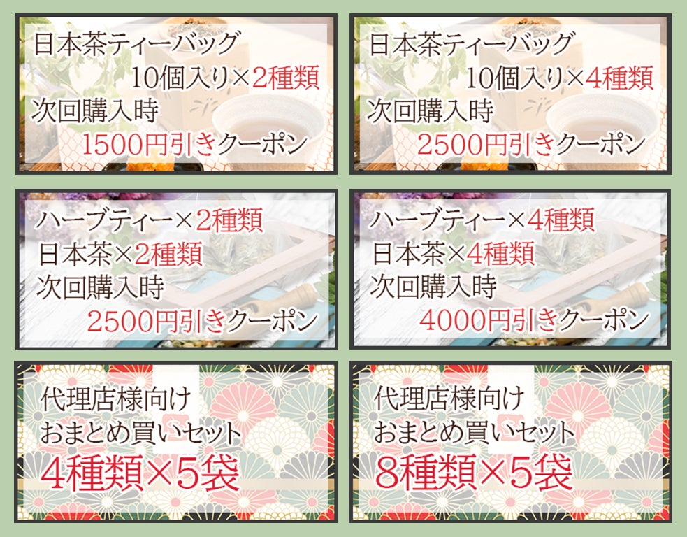 それに伴い、今回新たにJapanese Blend(日本茶シリーズ)のリターンをご用意しました。引き続きハーブのリターンもご用意していますので、お好みのものをお選びください。