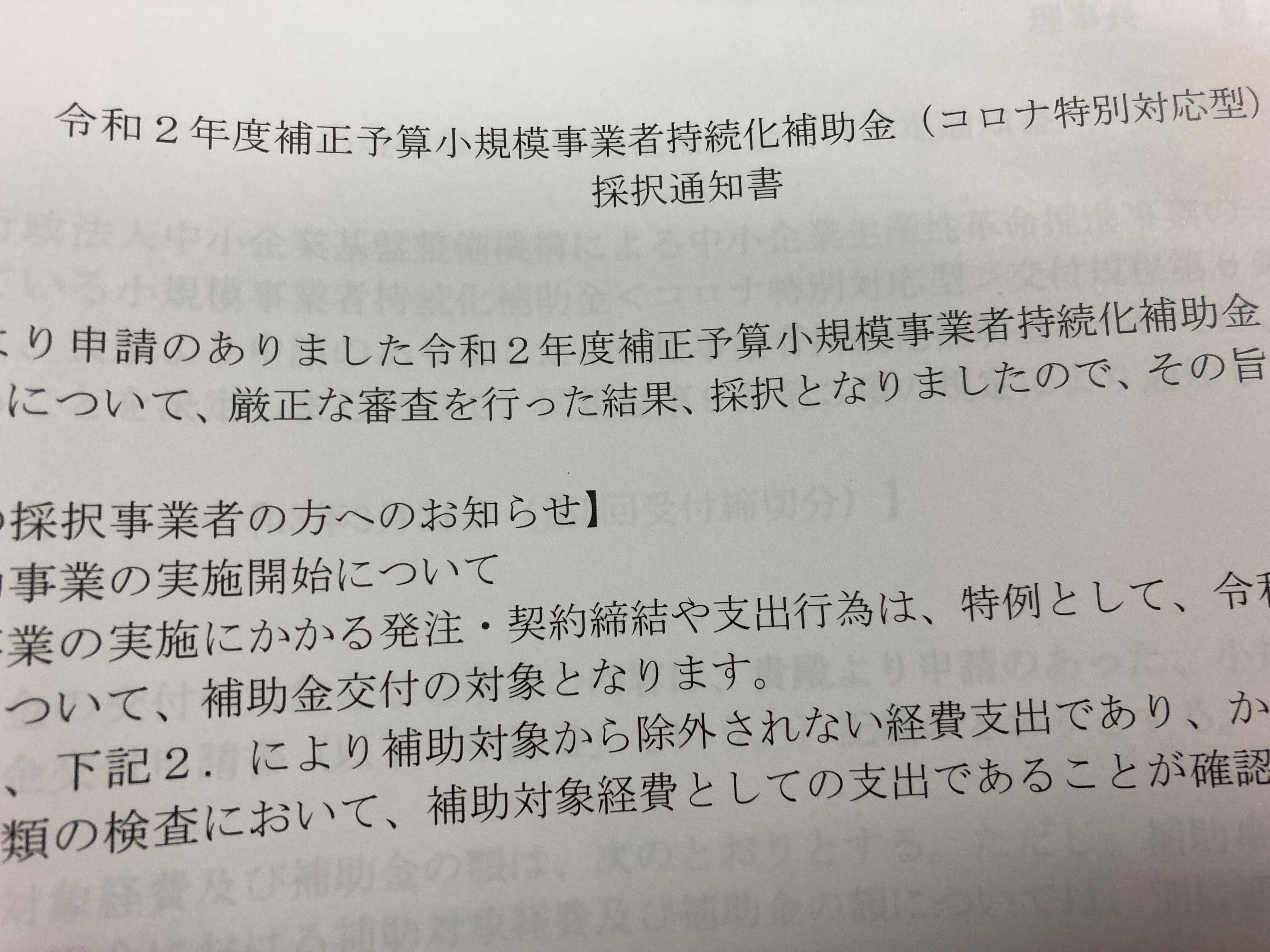 申請前の段階で商工会の指導員からはかなり厳しい狭き門を潜り抜けなければならない旨説明を受けました。分の悪い申請ではあることはわかっておりましたが、ダメで元々、採択されなくとも、申請のための経験はのちに大いに生きると考え、申請することとしました。