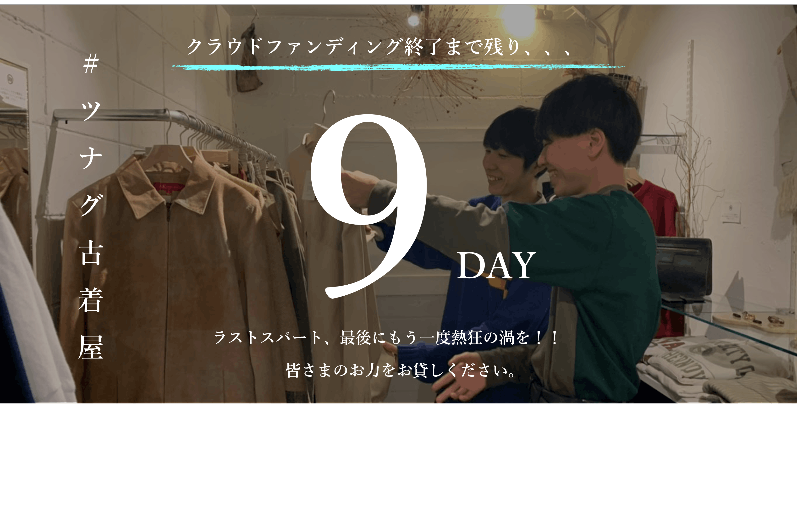 そして、古着屋『troika』のクラウドファンディングの挑戦も残り「9日」となりました。