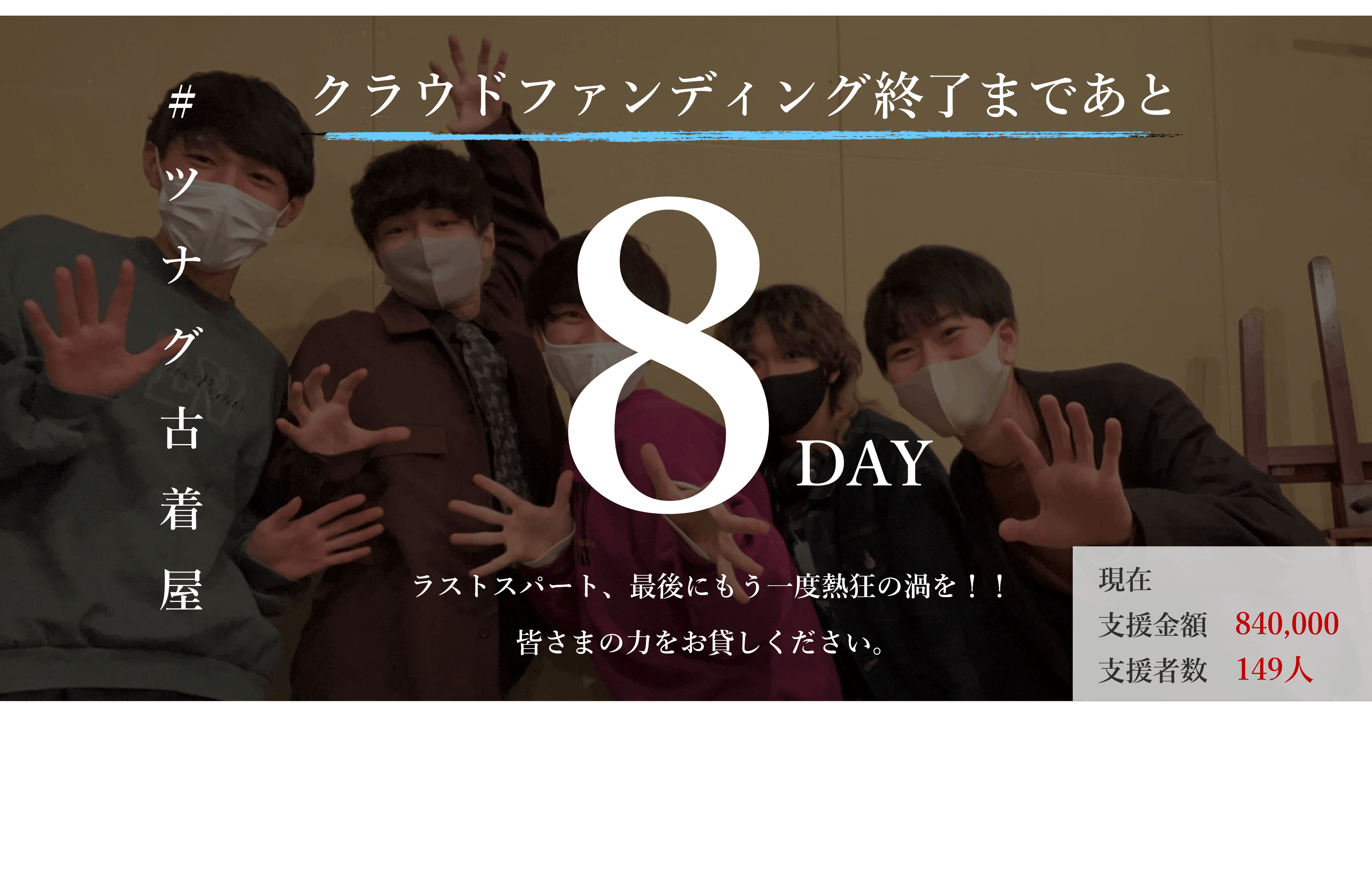 クラウドファンディングの挑戦も残り「8日」