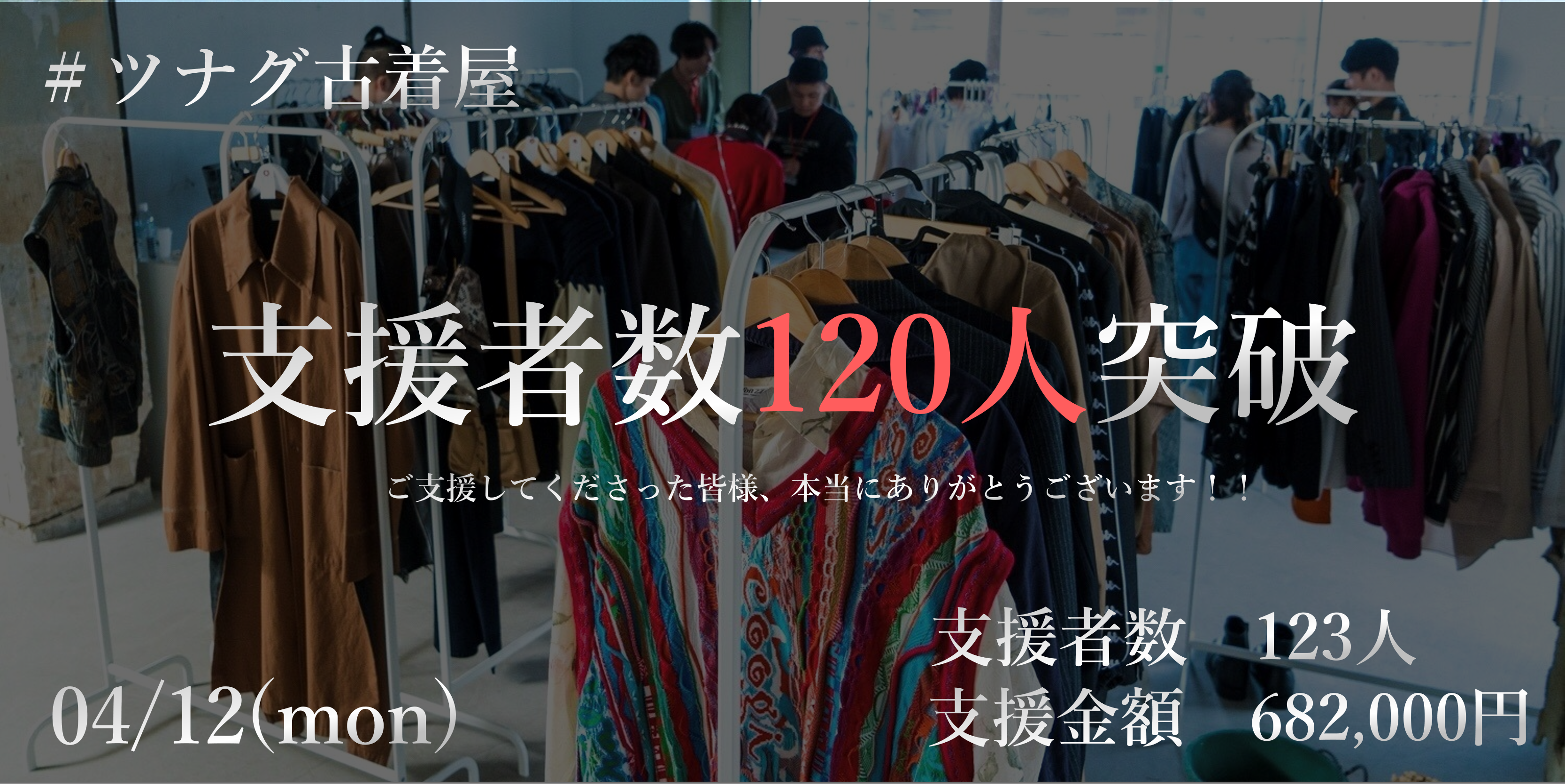 皆さんこんばんは。多くの方々のおかげで、支援者数が【120名】を突破いたしました!!!本当にありがとうございます。日々、『troika』スタッフ一同「ツナガリ」の大切さや温かさを実感しております。古着屋『troika』のクラウドファンディングの挑戦が始まってから早いことに「27日」が経ちました。クラウドファンディングを始める前はとても大きな不安と焦りがありましたが、こんなにも多くの方々からのご支援をいただき、感動で胸がいっぱいです。古着屋『troika』を応援してくださっている皆様と最高の古着屋にしていきたいです!!!まだまだ、古着屋『troika』の挑戦は続きますが目標達成に向け、最後まで応援していただけると幸いです!!!最後まで頑張るぞ!!!ツナグ古着屋『troika』一同