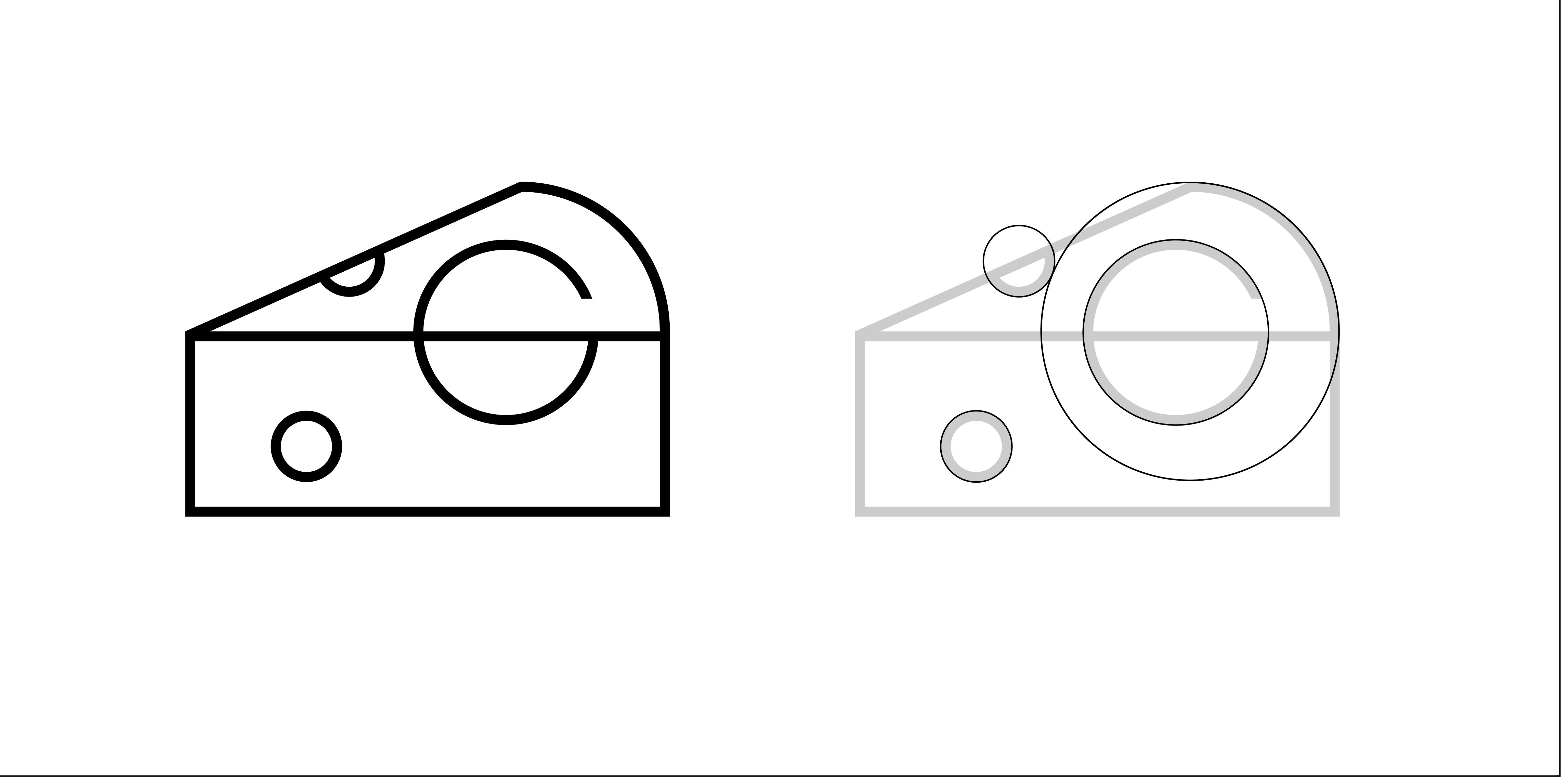 曲線部は正円の円弧を用いた、無機質で平面的なデザイン。